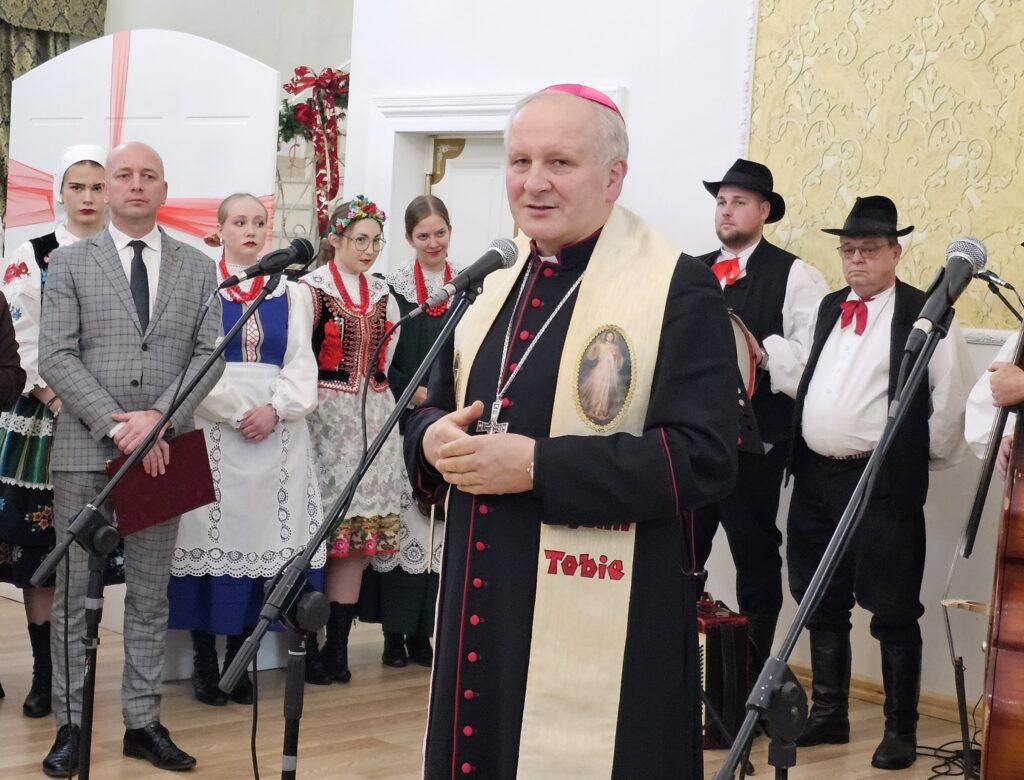 Biskup Łukasz Buzun na wigilii dla samotnych w Gołuchowie