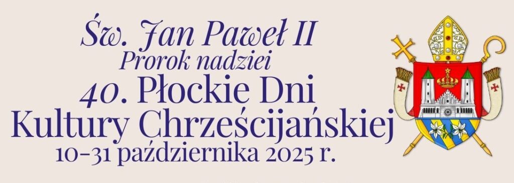 W Roku Jubileuszowym 950-lecia diecezji płockiej rozpoczęły się 40. Płockie Dni Kultury Chrześcijańskiej – jedno z najstarszych i najbardziej rozpoznawalnych wydarzeń kulturalno-religijnych w regionie. Tegorocznej edycji, odbywającej się pod hasłem Dnia Papieskiego „Św. Jan Paweł II. Prorok nadziei”, towarzyszą wykłady, modlitwa i inicjatywy artystyczne oraz promocje książek, które przypominają o trwałym związku wiary i kultury.