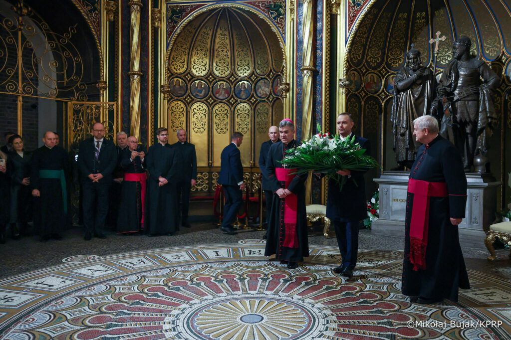 Prezydent Rzeczypospolitej Polskiej Karol Nawrocki odwiedził w Poznaniu najstarszą katedrę na ziemiach polskich. W Złotej Kaplicy bazyliki archikatedralnej pw. św. Apostołów Piotra i Pawła złożył wiązankę kwiatów przed sarkofagiem pierwszych władców Polski – Mieszka I i Bolesława Chrobrego.