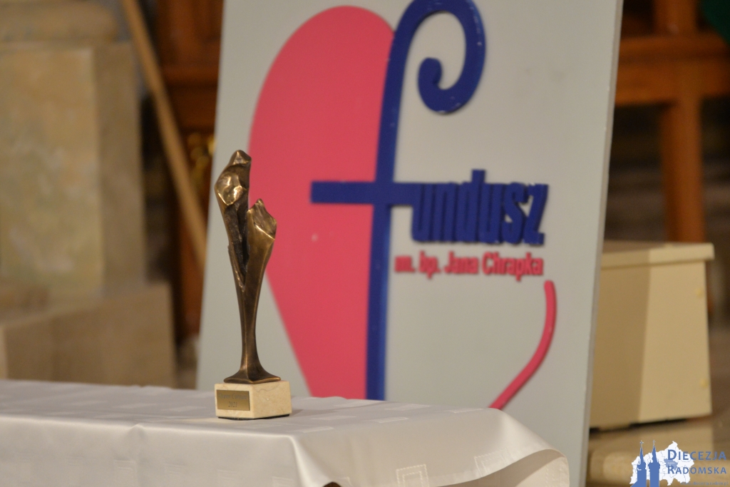 Na dyplomie, który razem ze statuetką otrzymuje laureat, napisana jest sentencja bp. Jana Chrapka: „Życie należy przeżywać z pasją wiary i chęcią służenia Chrystusowi w bliźnich”. Laureat otrzymuje statuetkę autorstwa artysty rzeźbiarza Sławomira Gęsiaka, która jest – jak przypominają przedstawiciele Funduszu Biskupa Jana Chrapka – „alegorią otwartego serca i rodzącej się z niego miłości”.