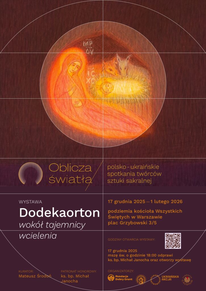 Fot. Fundacja Dobry GruntW podziemiach Kościoła Wszystkich Świętych w Warszawie trwa wystawa „Dodekaorton. Tajemnica Wcielenia”, prezentująca ikony i prace powstałe w ramach projektu „Oblicza Światła. Polsko-ukraińskie spotkania twórców sztuki sakralnej”. Ekspozycja, objęta honorowym patronatem bp. Michała Janochy, łączy modlitwę o pokój, refleksję teologiczną i konkretne wsparcie dla ofiar wojny w Ukrainie.