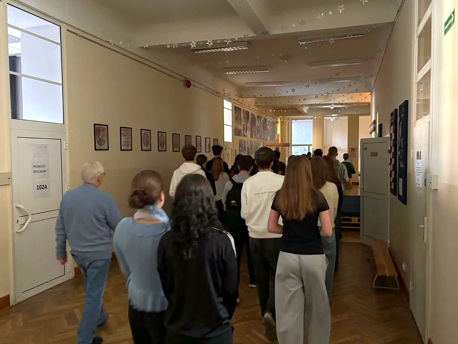Przeżycie drogi krzyżowej w przestrzeni szkolnej, gdy poszczególne stacje znajdowały się przy salach lekcyjnych, było niesamowitym przeżyciem. To już kolejny raz Zamoyszczacy wyrazili chęć wspólnej modlitwy – serdecznie dziękujemy inicjatorom i organizatorom, a także wszystkim uczestnikom Drogi Krzyżowej.