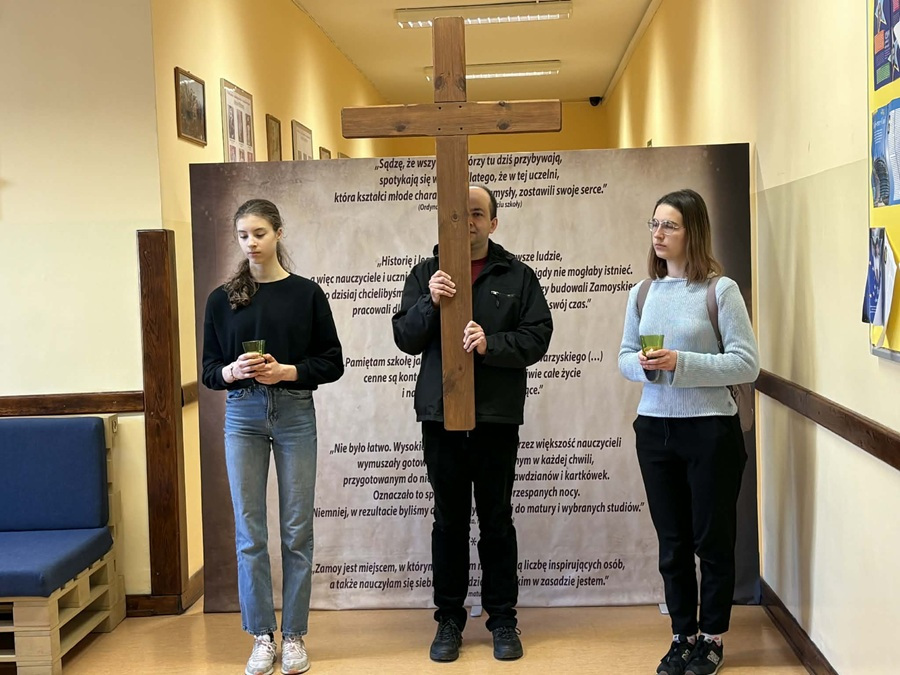 Z inicjatywy grupy uczniów w piątek 13 marca przed lekcjami w XVIII liceum im. Jana Zamoyskiego w Warszawie odbyła się Droga Krzyżowa. Wzięli w niej udział nauczyciele i uczniowie. Uczestnicy rozważali fragmenty Pisma Świętego, wybrane i czytane przez księdza Grzegorza.