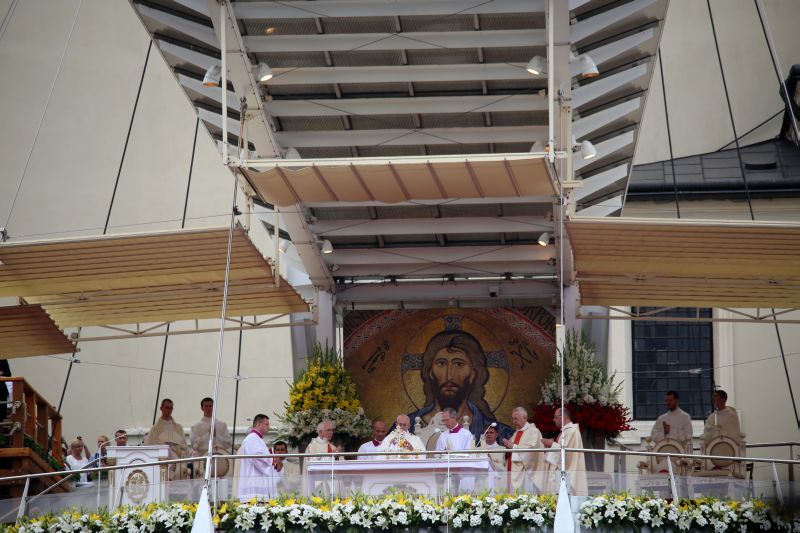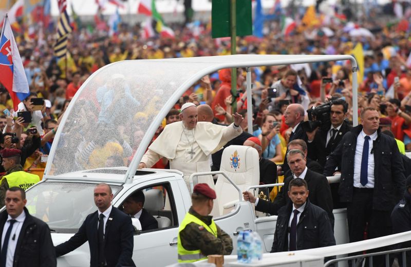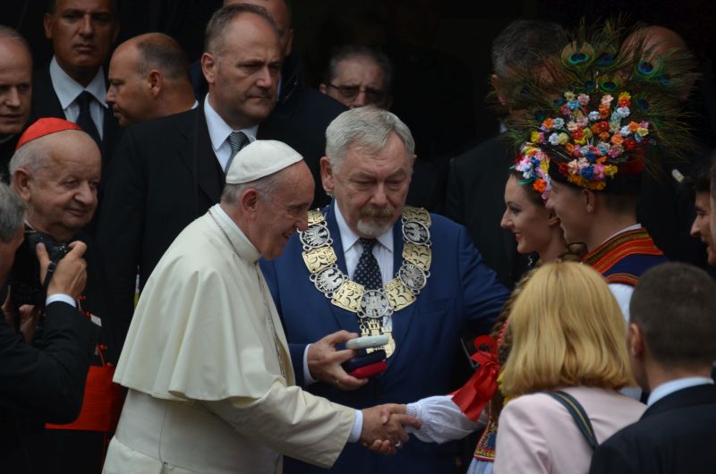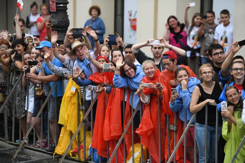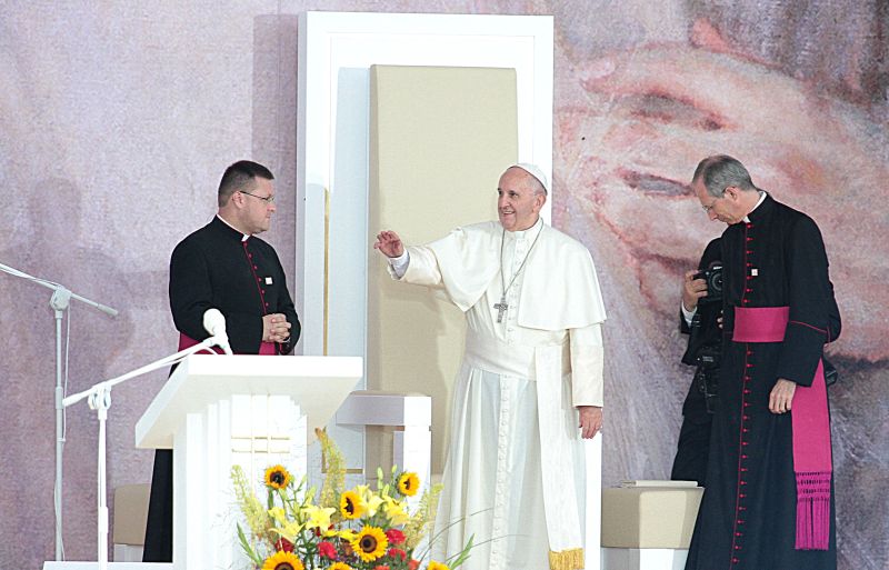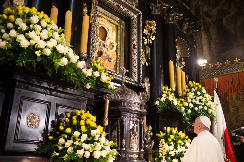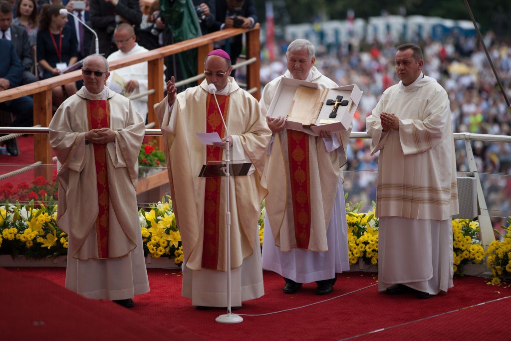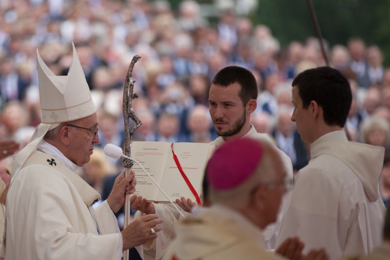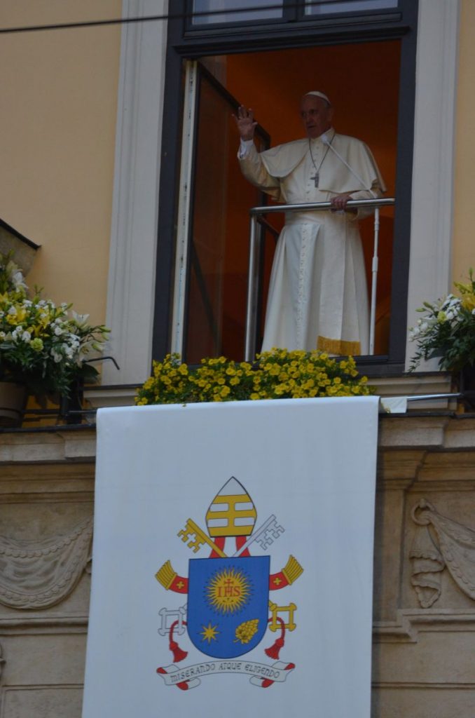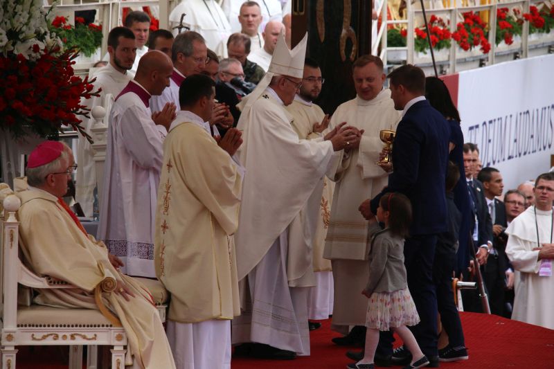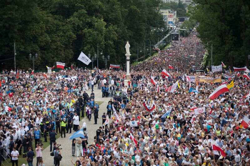 Fot. Karol Porwich / KAIOdwiedziny sióstr prezentek i kard. Franciszka Macharskiego w szpitalu w Krakowie, Msza św. dziękczynna za 1050 lat chrześcijaństwa w Polsce na Jasnej Górze, ceremonia powitania przez młodzież na krakowskich Błoniach i kolejne spotkanie w „Oknie Papieskim” ze zgromadzonymi na placu przed Domem Arcybiskupim złożyły się na drugi dzień wizyty Franciszka w Polsce z okazji 31. Światowych Dni Młodzieży w Krakowie – 28 lipca.