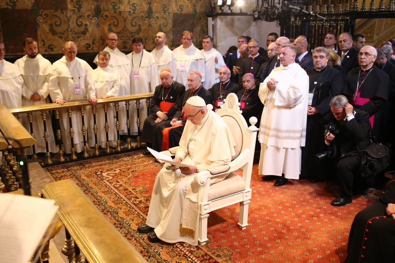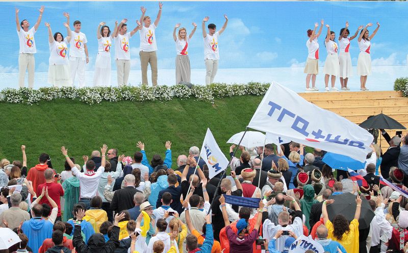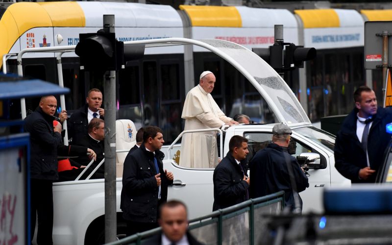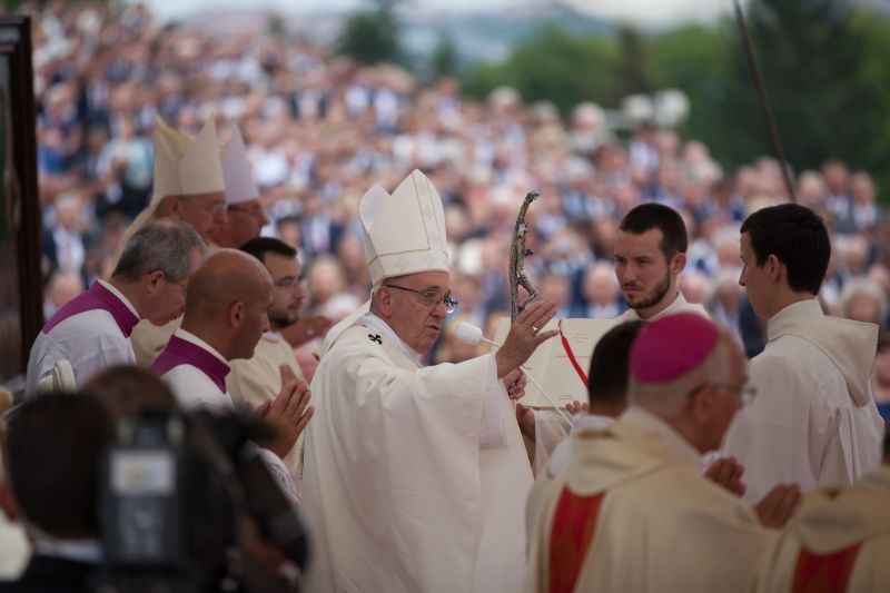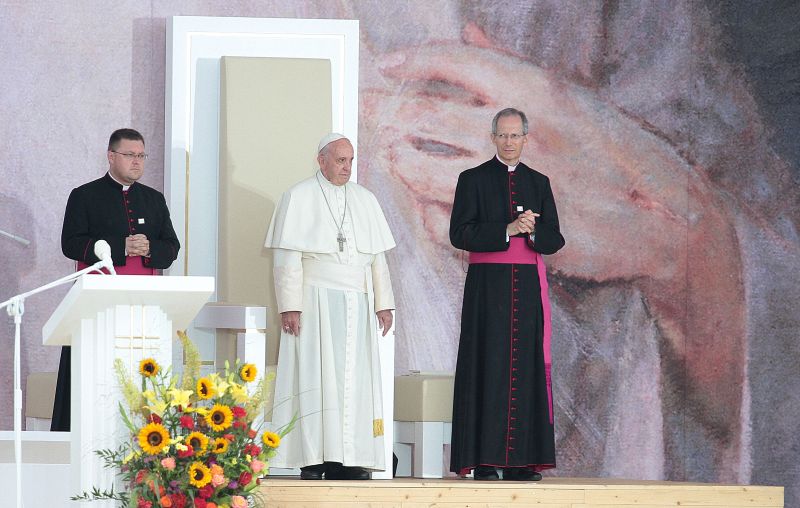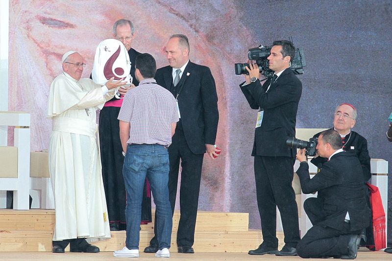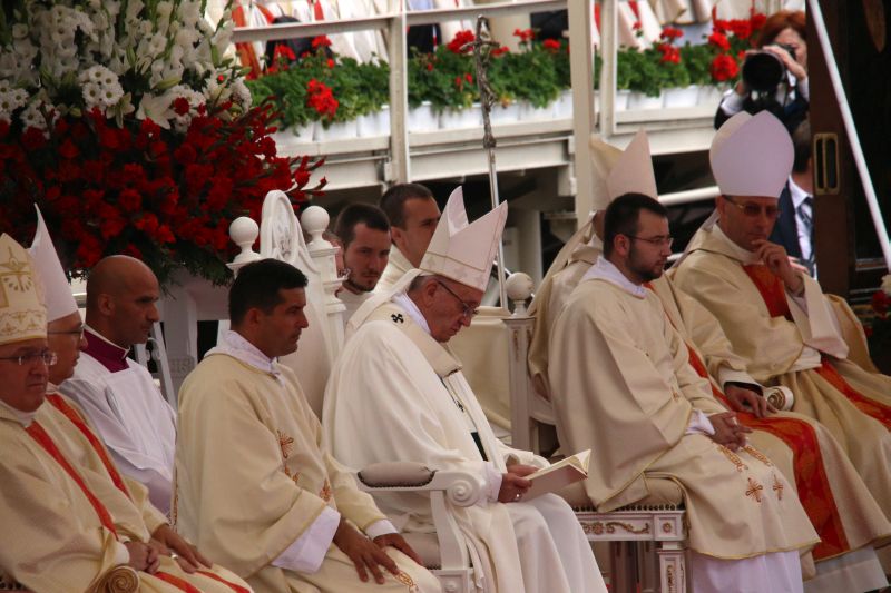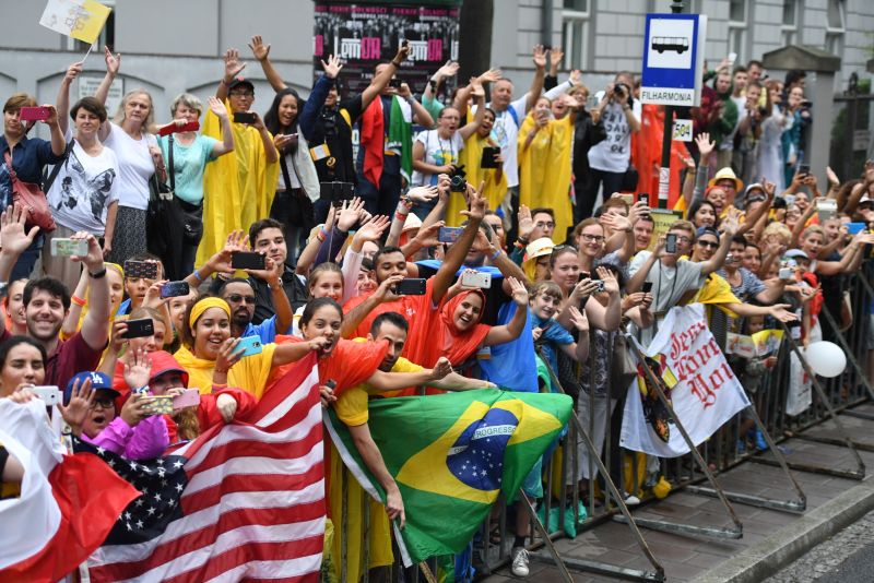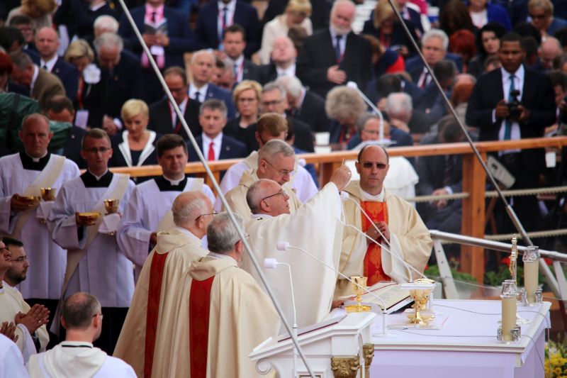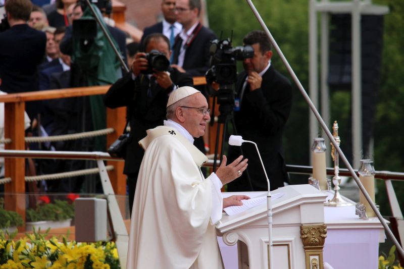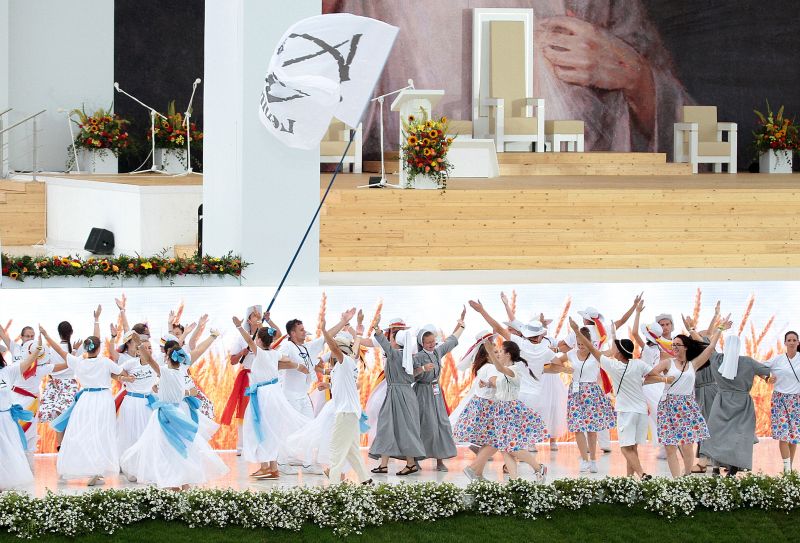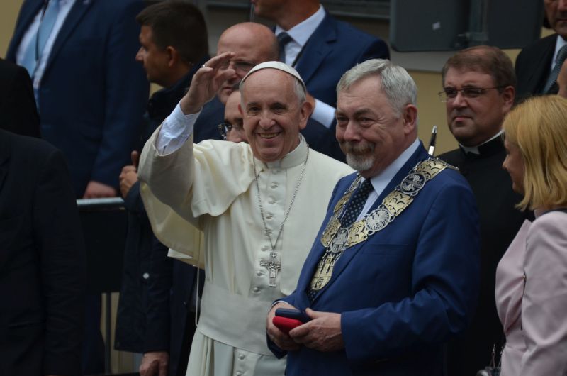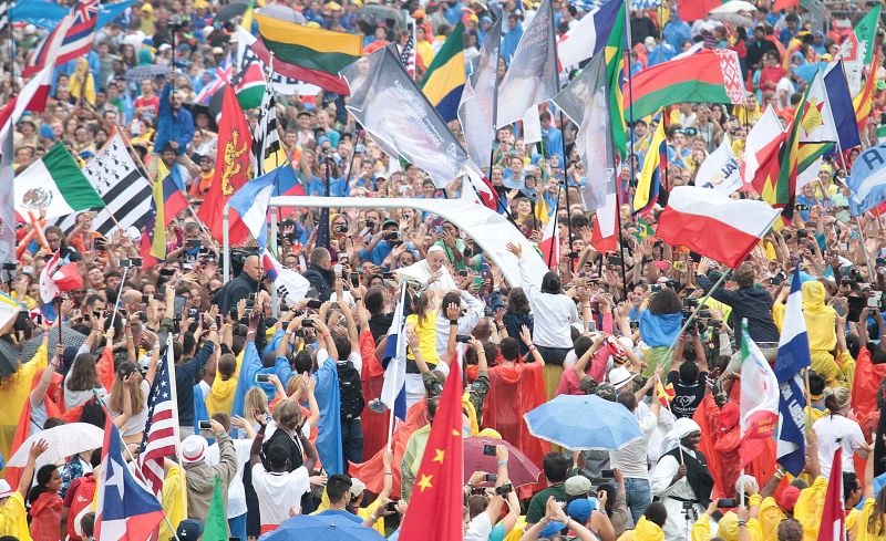 Fot. Karol Porwich / KAIOdwiedziny sióstr prezentek i kard. Franciszka Macharskiego w szpitalu w Krakowie, Msza św. dziękczynna za 1050 lat chrześcijaństwa w Polsce na Jasnej Górze, ceremonia powitania przez młodzież na krakowskich Błoniach i kolejne spotkanie w „Oknie Papieskim” ze zgromadzonymi na placu przed Domem Arcybiskupim złożyły się na drugi dzień wizyty Franciszka w Polsce z okazji 31. Światowych Dni Młodzieży w Krakowie – 28 lipca.