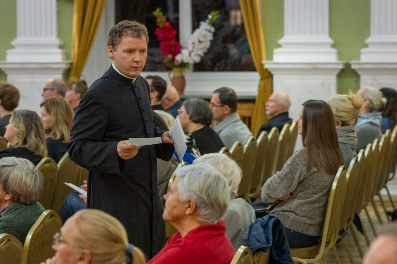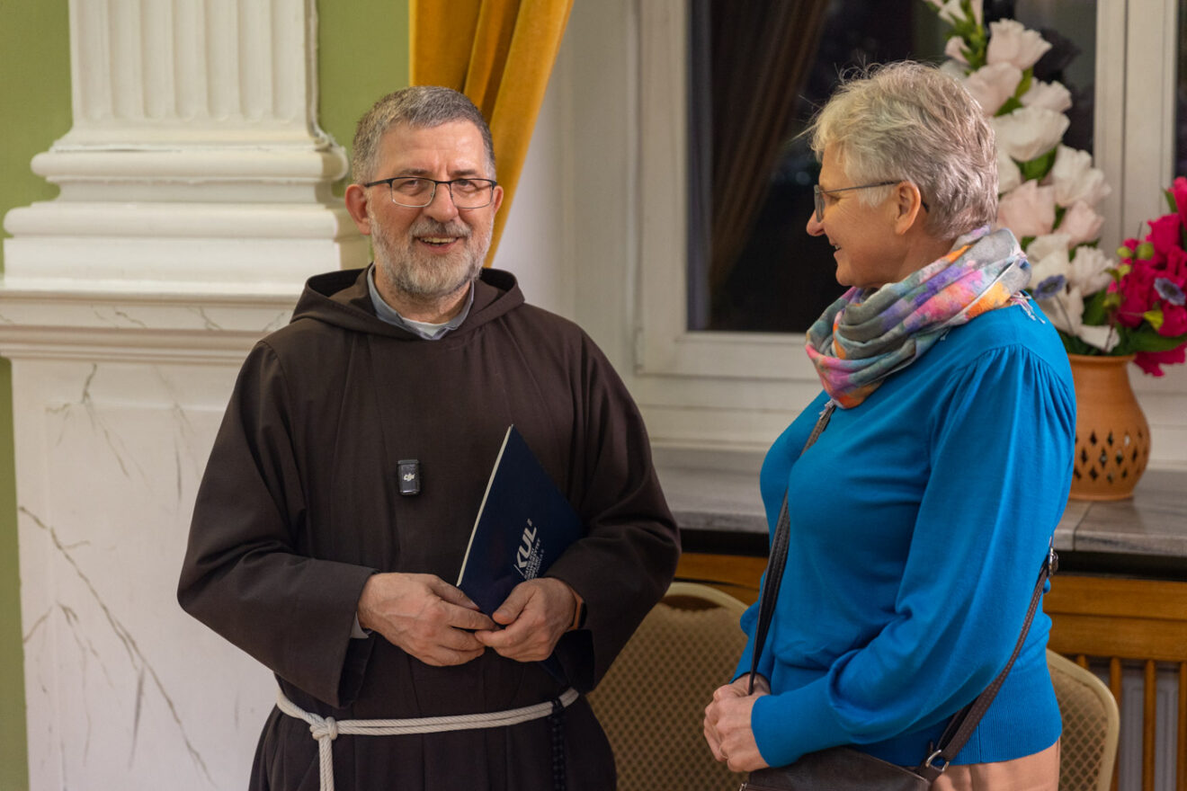 Jakie jest wyjście z tej sytuacji? Prelegent zwrócił uwagę na rolę daru męstwa i nadziei. Posiadanie tych sprawności nie wyklucza odczuwania strachu, ale uzdalnia do pokonywania go. Męstwo może przejawiać się zarówno w odwadze, jak i w wytrwałości. Nadzieja to ukierunkowanie na dobro i pozytywne cele. Człowiek może mieć różne ziemskie oczekiwania, nadzieje, które chce zrealizować, ale najwyższym wyrazem nadziei jest pragnienie życia wiecznego. Podstawą naszej nadziei jest zarówno wszechmoc jak i dobrać Boga. Rozwijanie męstwa i nadziei dokonuje się również dzięki zaangażowaniu naszego rozumu, racjonalnej wiedzy oraz samodyscypliny. Dużą rolę odgrywa higiena naszego umysłu, odrywanie się od myśli i treści nasilających lęk, nie tworzenie „czarnych scenariuszy” w głowie. I w końcu, nie sposób nie zauważyć potężnej pomocy modlitwy i sakramentu pojednania. To właśnie w spowiedzi możemy racjonalizować, wypowiadać nasze lęki i trudności. Nazywać to, co nas obciąża oraz przyjmować moc Bożego wyzwolenia. Po wykładzie o. Andrzej odpowiadał na liczne pytania słuchaczy. Kolejny wykład z tego cyklu odbędzie się 21 listopada.