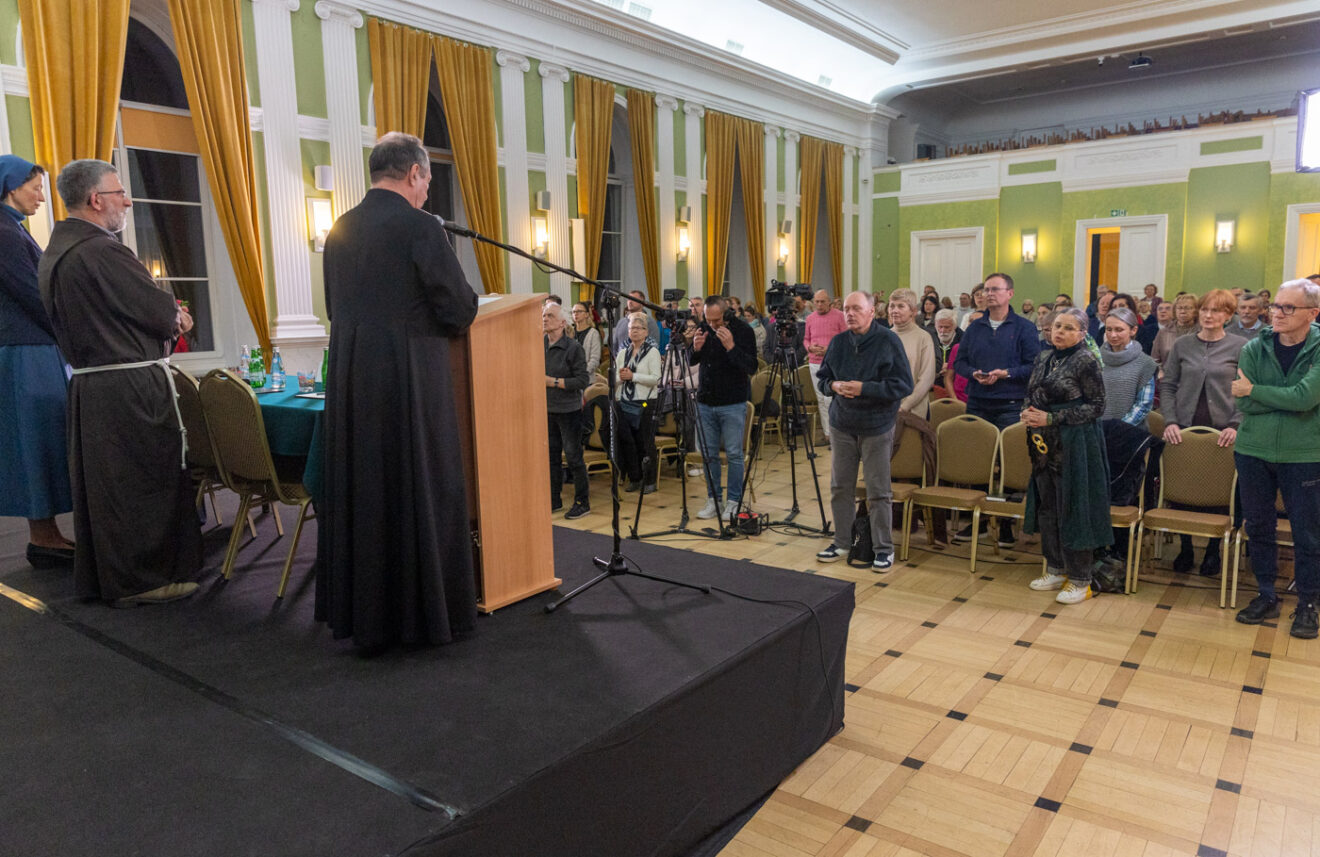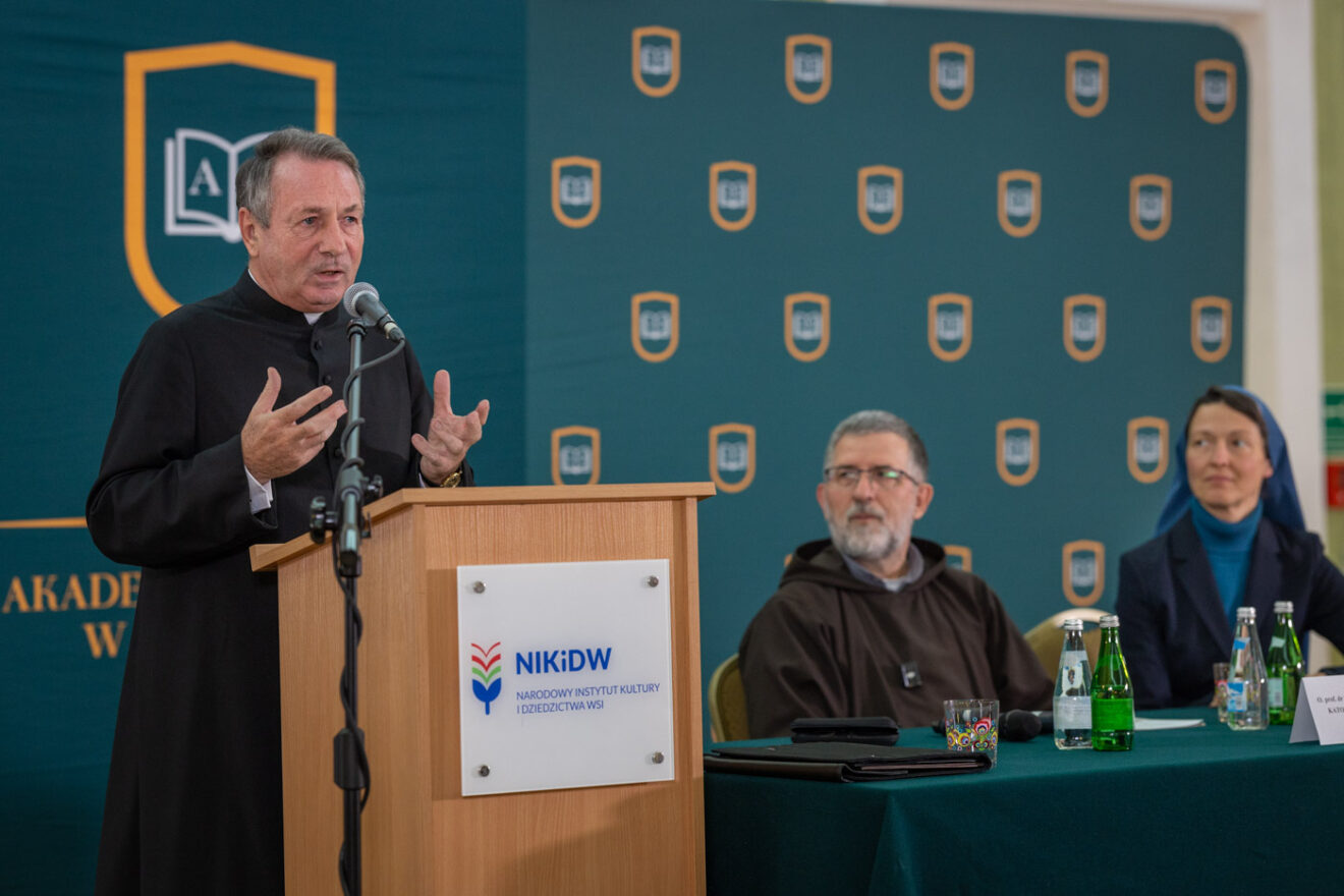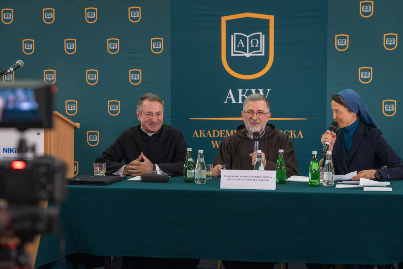 Prelegent, o. prof. Andrzej Derdziuk OFMCap, wykładowca Katolickiego Uniwersytetu Lubelskiego na początku dokonał rozróżnienia pomiędzy strachem i lękiem. Strach jest naturalną reakcją ludzkiego organizmu, która pojawia się w obliczu realnych zagrożeń, życia i zdrowia. Pojawiające się symptomy mają na celu ochronę człowieka. Lęk natomiast pojawia się na skutek ludzkich wyobrażeń, emocji, przeżyć i często dotyczy irracjonalnego zagrożenia. Nie powinniśmy „bać się” przeżywać te trudne emocje, ale podejść do nich racjonalnie, szukając rozwiązania. Poddanie się irracjonalnemu lękowi może prowadzić do poważnych zaburzeń, nerwic lękowych. Potrzeba zatem uświadamiać sobie, czy lęki mają realne podstawy w rzeczywistości. Prelegent mocno podkreślał, że obecnie żyjemy w epoce strachu, gdzie poprzez celowe działania społeczne i medialne wyolbrzymia się zagrożenia, aby w ten sposób uzależniać i zarządzać ludźmi. Na płaszczyźnie duchowej lęk może podsycać również zły duch, wykorzystując traumy i zranienia z przeszłości.