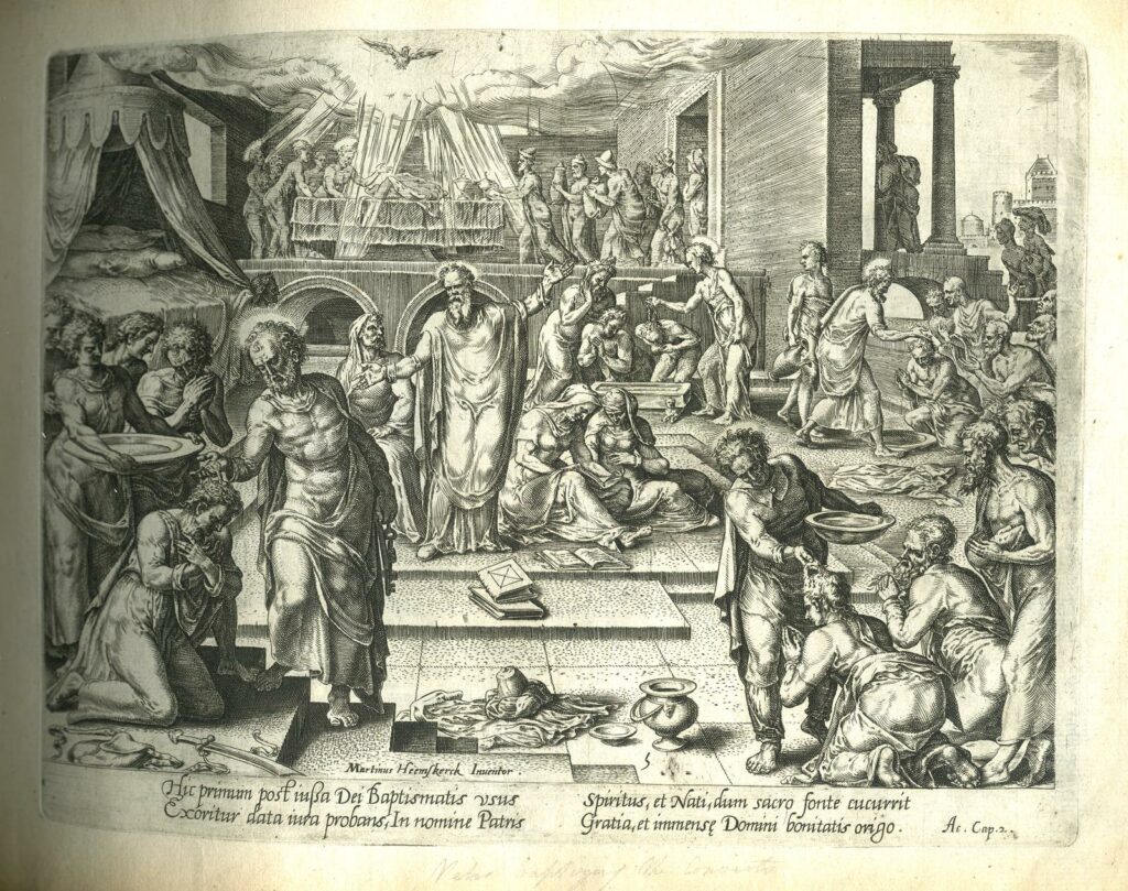 Philip Galle lub Fhilips Galle (1537-1612) holenderski drukarz i rytownik Apostołowie chrzczący w Jerozolimie (XVI w).