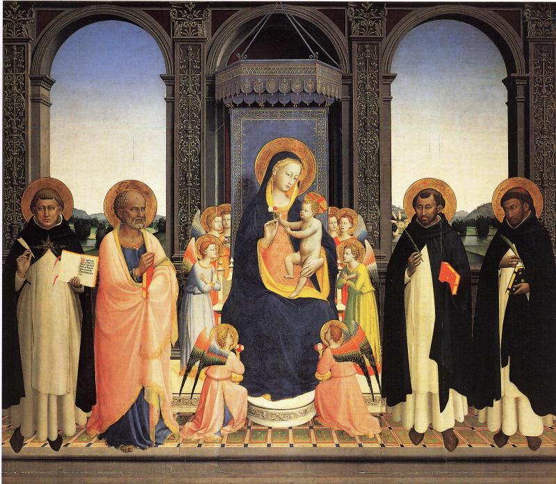 Fra Angelico (1395-1455) także Jan z Fiesole, właściwie Guido di Pietro da Mugello, malarz religijny wczesnego renesansu Madonna z Dzieciątkiem i św. Barnabą (1428-1430), nastawa ołtarzowa z kościoła San Dominico (Włochy, Fiesole).