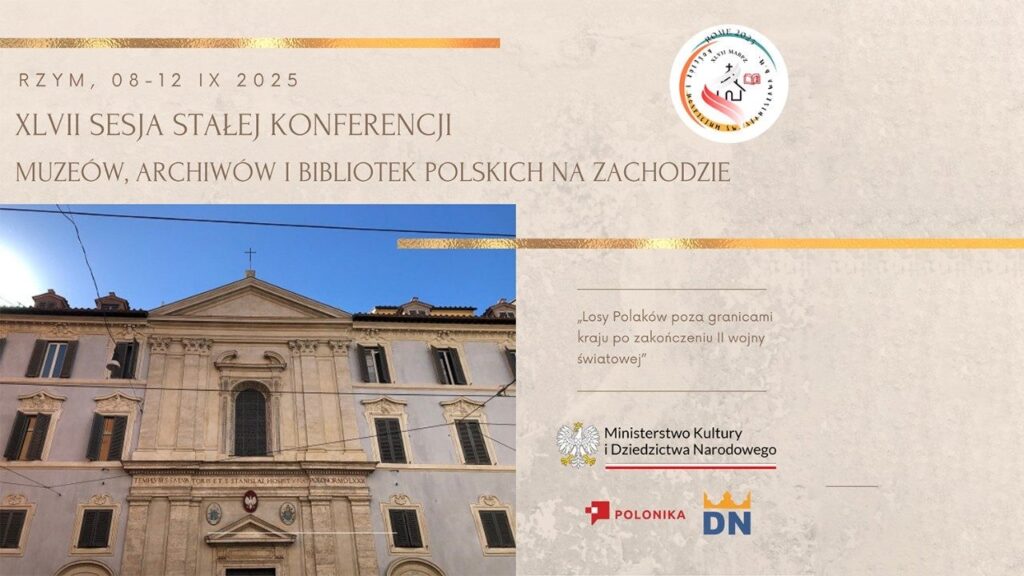 W dniach 8-12 września 2025 roku w Rzymie odbędzie się 47 Sesja Stałej Konferencji Muzeów, Archiwów i Bibliotek Polskich na Zachodzie (MABPZ). Gospodarzem tegorocznych obrad będzie Kościół i Hospicjum św. Stanisława Biskupa i Męczennika w Rzymie, które zaprosi uczestników do dyskusji pod hasłem: „Losy Polaków poza granicami kraju po zakończeniu II wojny światowej”.