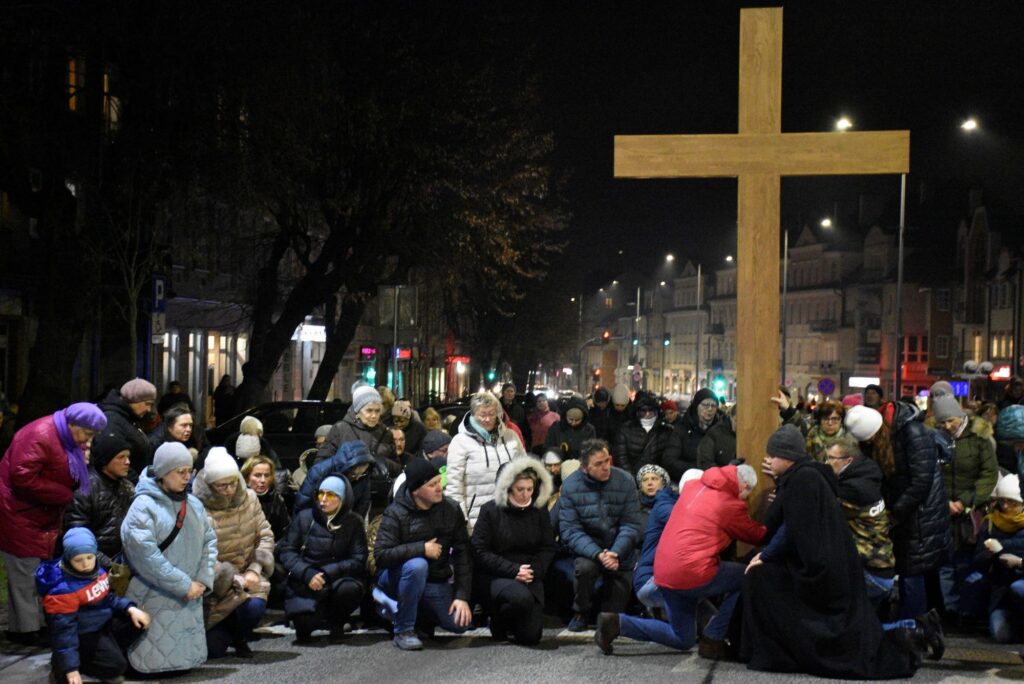 „Kończąc Drogę Krzyżową, z głębi naszych serc, zatroskani o losy naszej Ojczyzny prosimy Ciebie Jezu o prawych polityków, uczciwych przedsiębiorców, solidnych pracowników. Udzielaj swego błogosławieństwa małżonkom i rodzinom, daj nam świętych kapłanów i nauczycieli wiary” – mówił ks. Malinowski.