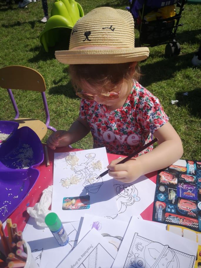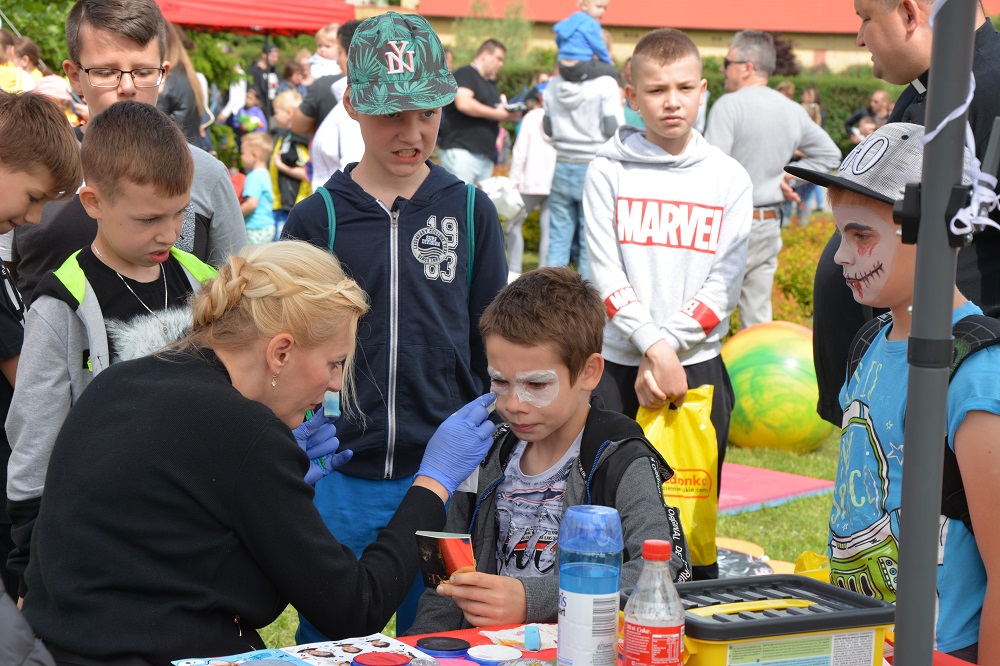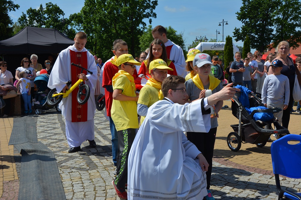 Po Eucharystii dzieci świętowały korzystając z pięknej pogody i bogatej oferty licznych zabaw w wesołym miasteczku, na dmuchanych zjeżdżalniach, w basenach z piłeczkami czy na torach przeszkód. Tutaj mogły obejrzeć przedstawienia teatralne, przebrać się za postać z bajki i zrobić pamiątkowe zdjęcie w fotobudce lub towarzystwie np. Batmana, Spidermana i Supermana. Swoich sił dzieci mogły spróbować w tańcu na trampolinach. Na najmłodszych czekała strefa animacyjna, gdzie pod opieką animatorów dzieci malowały oraz poznawały zasady bezpieczeństwa nad wodą, drodze, czy w towarzystwie psa.