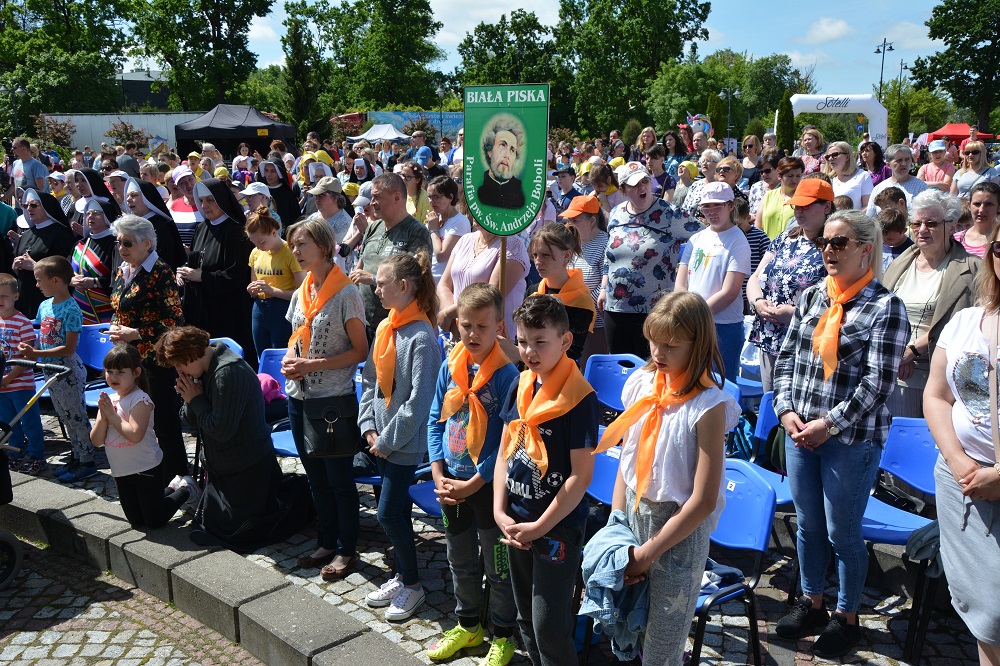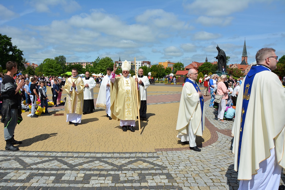 Fot. Renata RóżańskaPo raz czternasty w Ełku odbył się dziś Ogólnopolski Festyn Rodzinny. W tym roku ponad 2 tys. dzieci przybyło na plac św. Jana Pawła II. Uczestnicy przyjechali z terenu całej diecezji, aby wspólnie świętować Dzień Dziecka oraz 20. rocznicy wizyty św. Jana Pawła II w diecezji ełckiej. Uroczystej Mszy św. przewodniczył bp Jerzy Mazur, biskup ełcki. Hasło tegorocznego spotkania z dziećmi to słowa św. Jana Pawła II wygłoszone w Ełku, w czerwcu 1999 r: „Odwagi! Bóg jest z wami”.