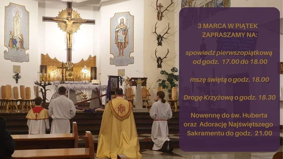 - 28 lutego ukazał się na FB post promujący nabożeństwo pierwszych pięciu sobót miesiąca – Nabożeństwo do Niepokalanego Serca Maryi. Na stoliczku w kościele pojawiły się też książeczki ułatwiające modlitwę i podjęcie zobowiązania duchowego. Nabożeństwo pierwszych sobót jest kontynuowane z lat ubiegłych.