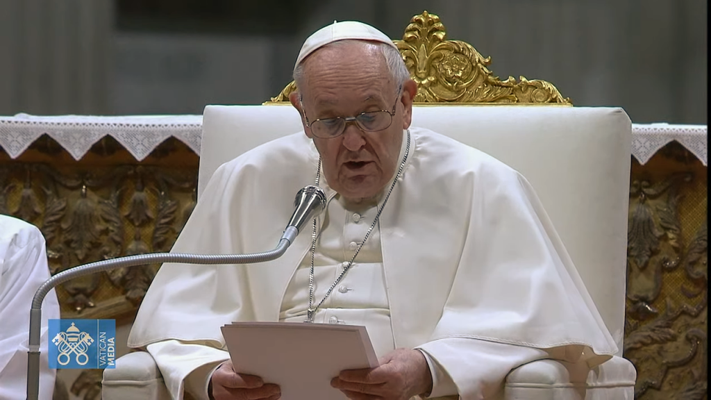 Swoją homilię papież rozpoczął od cytatu z Michaiła Bułhakowa: „Rozgwieżdżone noce ukraińskie, drogie sercu. O spokoju i dobroczynna ciszo”. Zwrócił uwagę, że dziś „wojenne noce są przeorane świetlistymi smugami śmierci”.