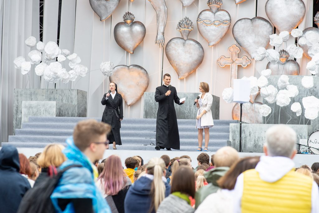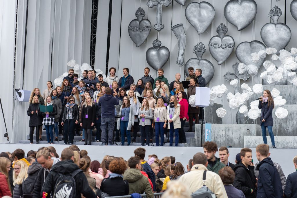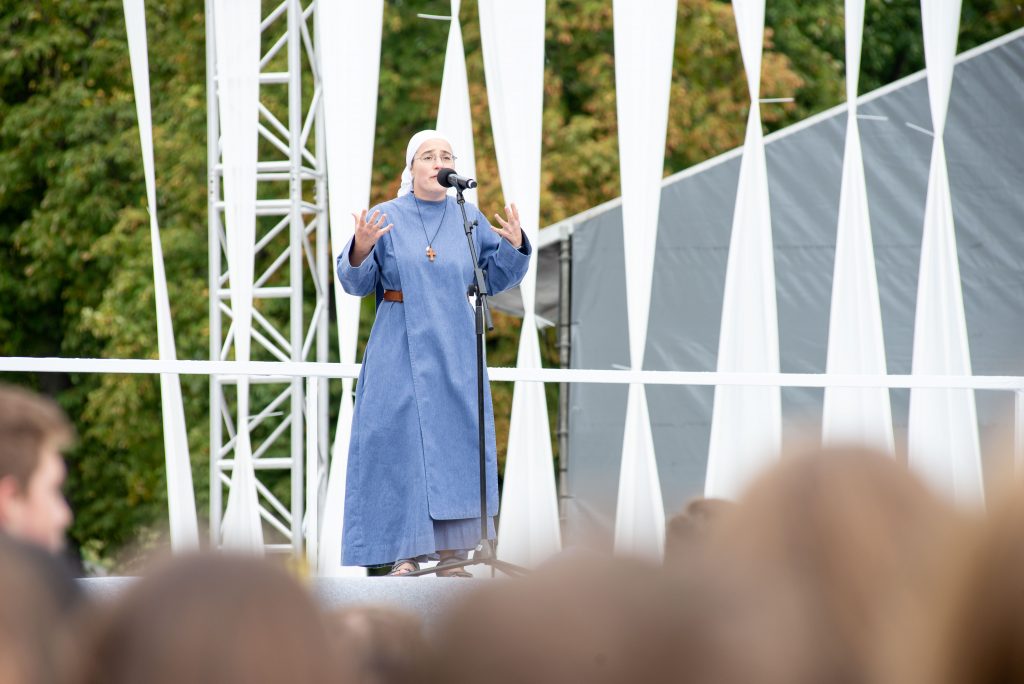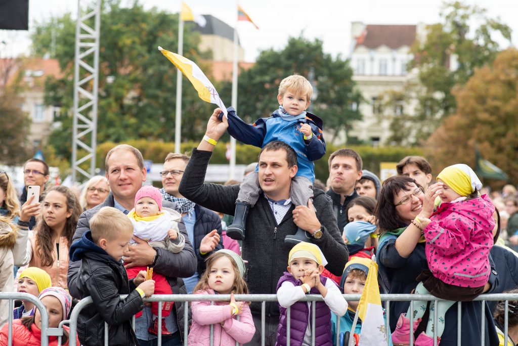 Nawiązując do świadectw dwojga młodych papież podkreślił znaczenie muzyki i śpiewu oraz modlitwy jako dróg rozwoju wiary. Zwrócił też uwagę na doświadczenie pomagania innym ludziom.A nawiązując do problemów jakie dziś przeżywają młodzi Litwini, powiedział: „Dostrzeganie słabości innych osób ustawia nas w rzeczywistości, zapobiega temu, abyśmy żyli, liżąc swoje rany. Iluż młodych ludzi opuszcza swą ojczyznę z powodu braku szans! Iluż pada ofiarą depresji, alkoholu i narkotyków! Ileż osób starszych żyje w samotności, bez kogoś, z kim można by dzielić się teraźniejszością i obawą, żeby nie wróciła przeszłość. Możecie odpowiedzieć na te wyzwania swoją obecnością i spotkaniem między wami a innymi”.