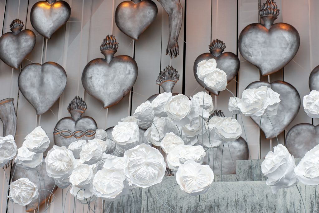 Spotkaniu z młodzieżą na podium towarzyszył słynny, oryginalny obraz Jezusa Miłosiernego z umieszczonym na metalowej tabliczce podpisem: „Jezu, ufam Tobie”. Na co dzień znajduje się on w jedynym ołtarzu sanktuarium Miłosierdzia Bożego w dawnym kościółku Świętej Trójcy przy ulicy Dominikańskiej w Wilnie. Został namalowany w 1934 r., według wskazówek św. Faustyny Kowalskiej, przez Eugeniusza Kazimirowskiego. W tle podium umieszczono także symboliczne wota dziękczynne, znane z wileńskich sanktuariów: serca, ręce, nogi, krzyże.