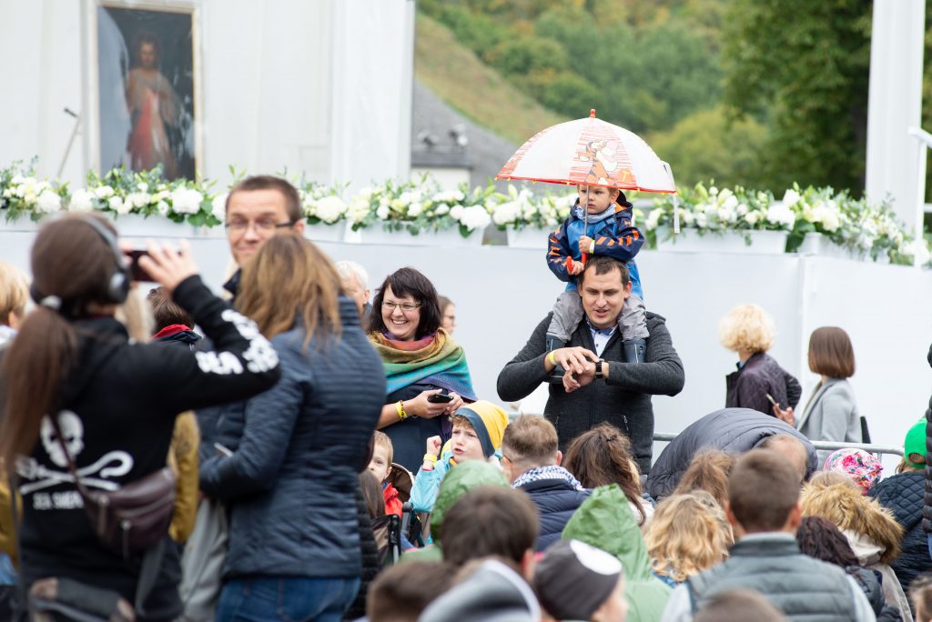 A nawiązując do – specjalnie przyniesionego z tej okazji na plac katedralny – obrazu Jezusa Miłosiernego, namalowanego w Wilnie przez Eugeniusza Kazimirowskiego, abp Grušas podkreślił, że Pan Jezus przychodzi do nas w najmroczniejszych chwilach, przynosząc nam miłosierdzie i nadzieję. Przypomniał, iż Jan Paweł II zachęcił Wilnian, by byli apostołami miłosierdzia i szerzyli to orędzie po całym świecie.