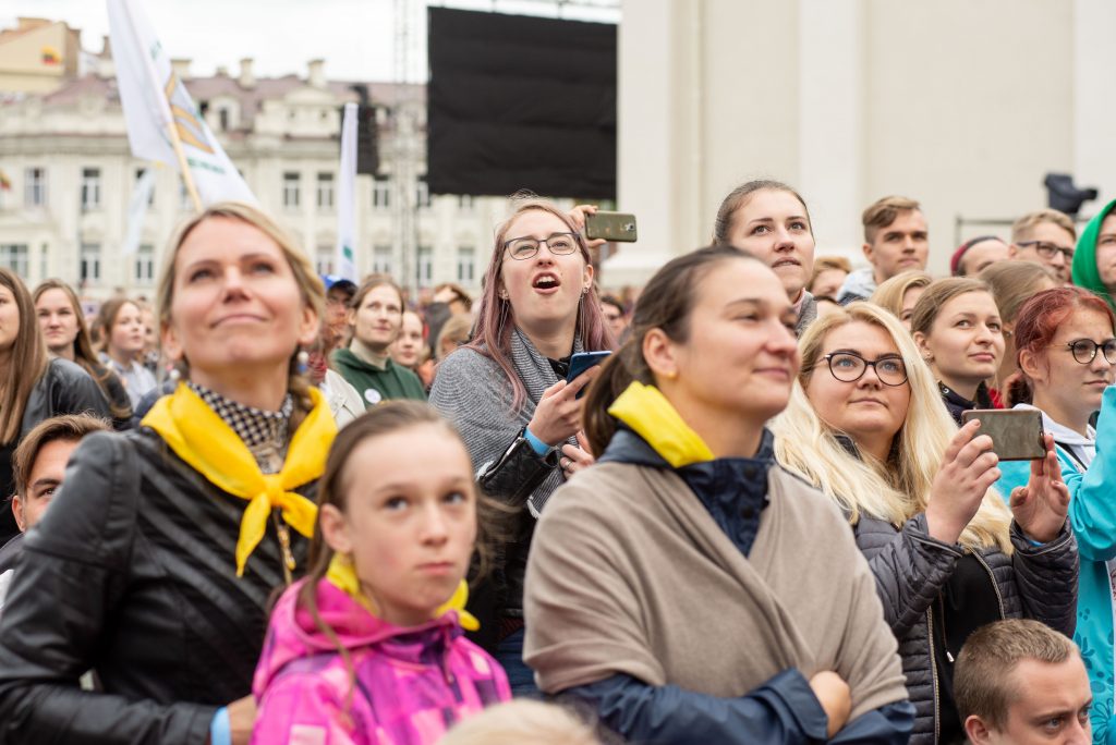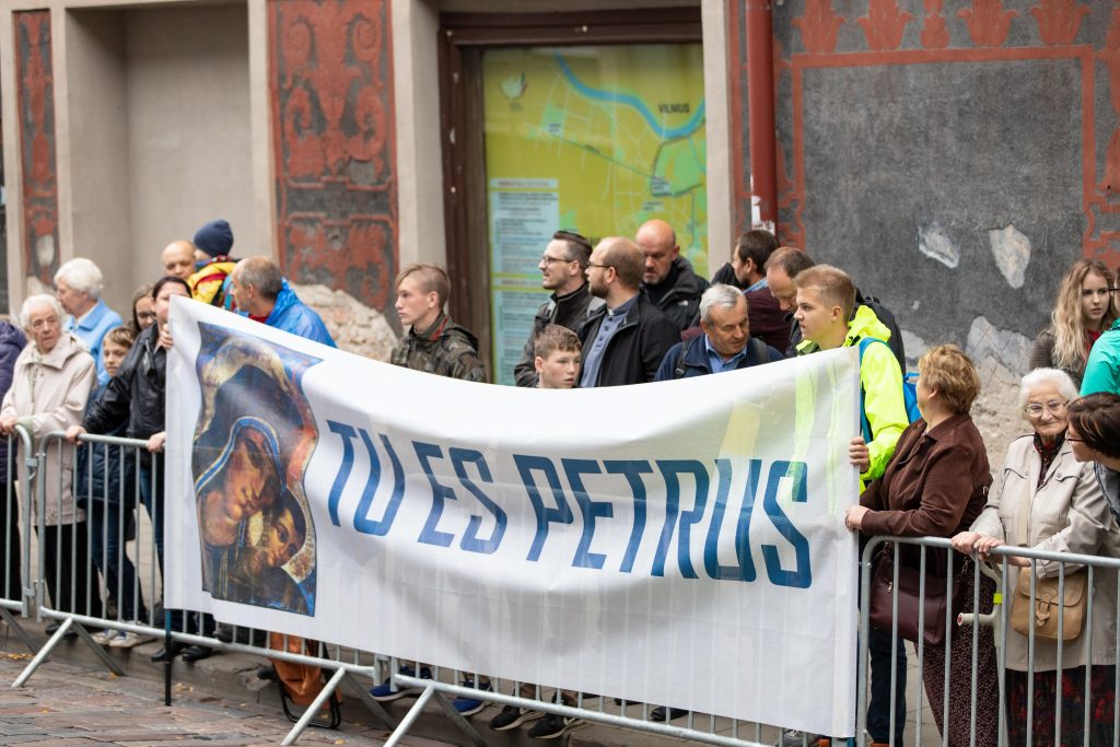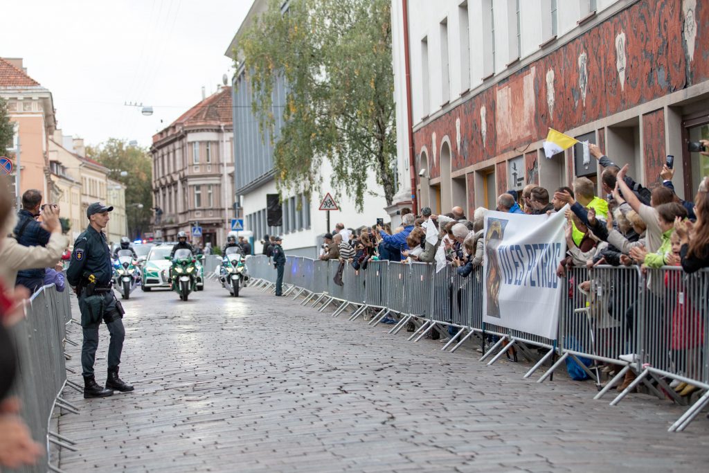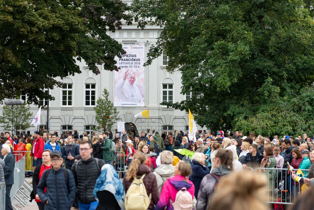 Z sanktuarium Matki Bożej Miłosierdzia papież przejechał ulicami Wilna na plac Katedralny, tam pomiędzy sektorami, był entuzjastycznie witany przez młodzież nie tylko z Litwy ale i z Łotwy, Estonii, Białorusi, Polski i Ukrainy. Spotkanie z Franciszkiem wypełnione było pieśniami i programem tanecznym.