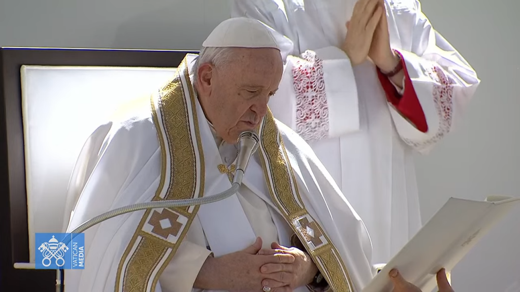 Na zakończenie Franciszek zaapelował: „A teraz przyzywajmy Matki Bożej, aby – jak powiedziałem na zakończenie homilii – wyjednała przebaczenie i pokój dla całego świata. Módlmy się za naród ukraiński i za wszystkie narody, które cierpią z powodu wojen. Niech Bóg pokoju ożywi w sercach przywódców narodów ludzki i chrześcijański zmysł miłosierdzia. Maryjo, Matko Miłosierdzia i Królowo Pokoju, módl się za nami!”