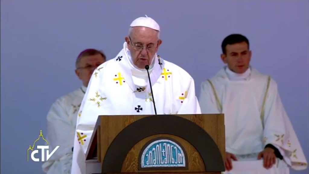 „Mała umiłowana trzódko Gruzji, która tak bardzo poświęcasz się działalności charytatywnej i wychowawczej, przyjmij zachętę Dobrego Pasterza, powierz się Jemu, który bierze Ciebie na ramiona i pociesza!” – powiedział Franciszek podczas Mszy św. na stadionie im. Micheila Meschiego w Tbilisi. W Eucharystii wzięło udział tysiące wiernych, wśród których było wielu młodych prawosławnych. Był też prezydent Gruzji Giorgi Margwelaszwili.