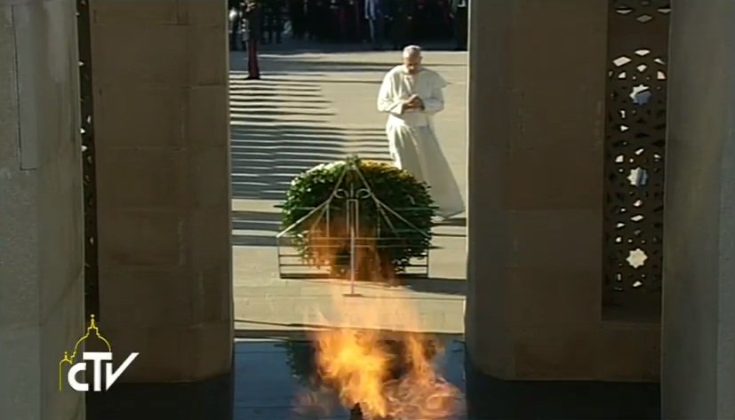 Przebywający w Baku papież Franciszek złożył wieniec pod pomnikiem poległych w walce o niepodległość Azerbejdżanu. Towarzyszył mu burmistrz stolicy kraju. Nie wygłoszono żadnych przemówień.