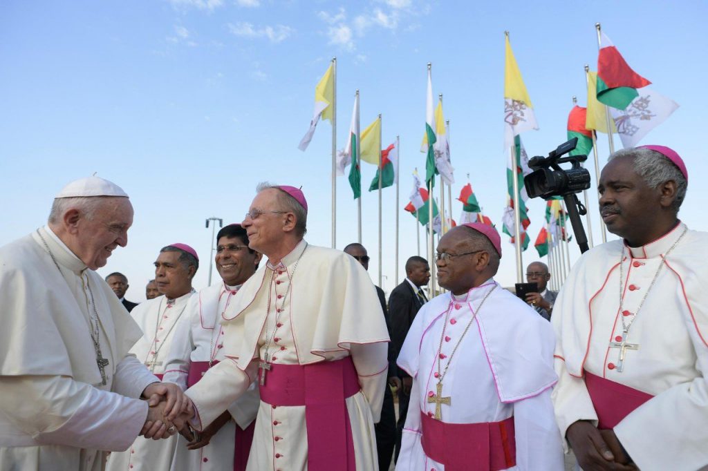 Papieża powitał przewodniczący episkopatu kard. Désiré Tsarahazana. – Stanąłeś na ziemi bogatej historią, oryginalną kulturą i mądrością odziedziczoną po przodkach. Spotykasz lud religijny, wierzący w Boga Stworzyciela, w Boga Życia, w którym osoba ludzka jest święta. Ta wspólna podstawa jest bogactwem, które sprzyja przyjmowaniu Ewangelii Chrystusa – mówił hierarcha.