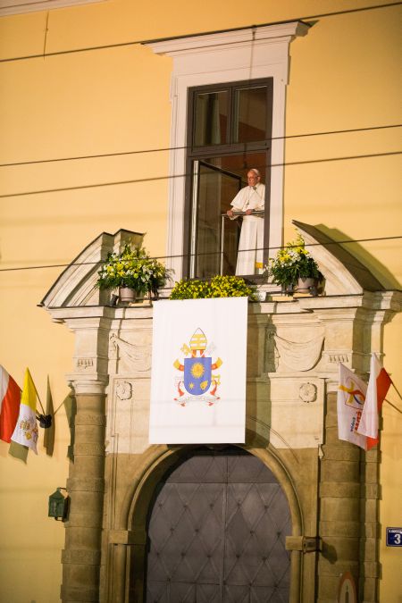 Fot. Piotr Tumidajski - KAIPozwól, dziękuję, przebacz – stosowanie tych trzech słów pozwoli dobrze przeżyć życie rodzinne i małżeńskie. Przekonywał o tym Franciszek z „Okna Papieskiego” 28 lipca wieczorem. Stwierdził, że zawarcie ślubu wymaga odwagi, ponieważ nie jest łatwo oddać swoje życie drugiemu człowiekowi, a małżeństwa powinny być otaczane wielką troską. Ojciec Święty pojawił się w słynnym oknie na Franciszkańskiej o 20.07, czyli znacznie wcześniej niż się spodziewano.