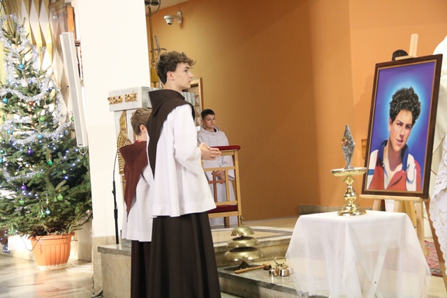 Fot. Fray Foto / CathopicBiskup kaliski Damian Bryl w kościele św. Antoniego Padewskiego w Jarocinie przewodniczył Mszy św. inaugurującej jubileusz 90-lecia pobytu ojców franciszkanów na ziemi jarocińskiej. Podczas Eucharystii wprowadzono relikwie bł. Carlo Acutisa.