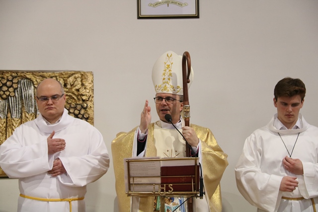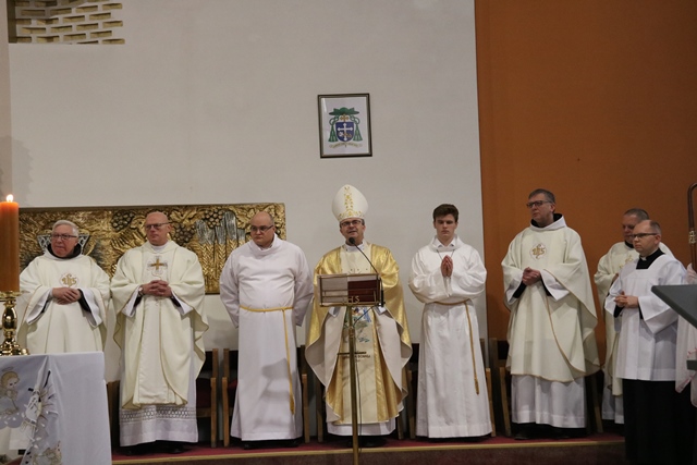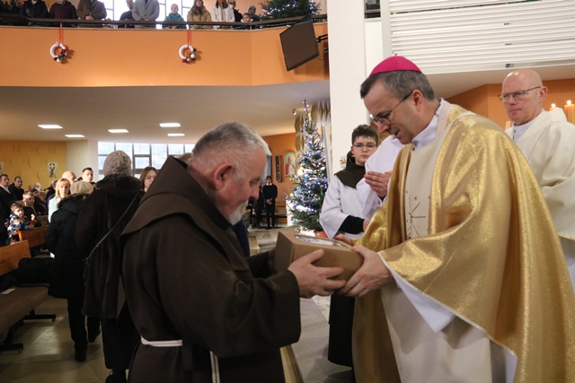Biskupa, kapłanów i bardzo licznie zgromadzonych wiernych powitał gwardian wspólnoty zakonnej o. Łukasz Rosiak OFM.