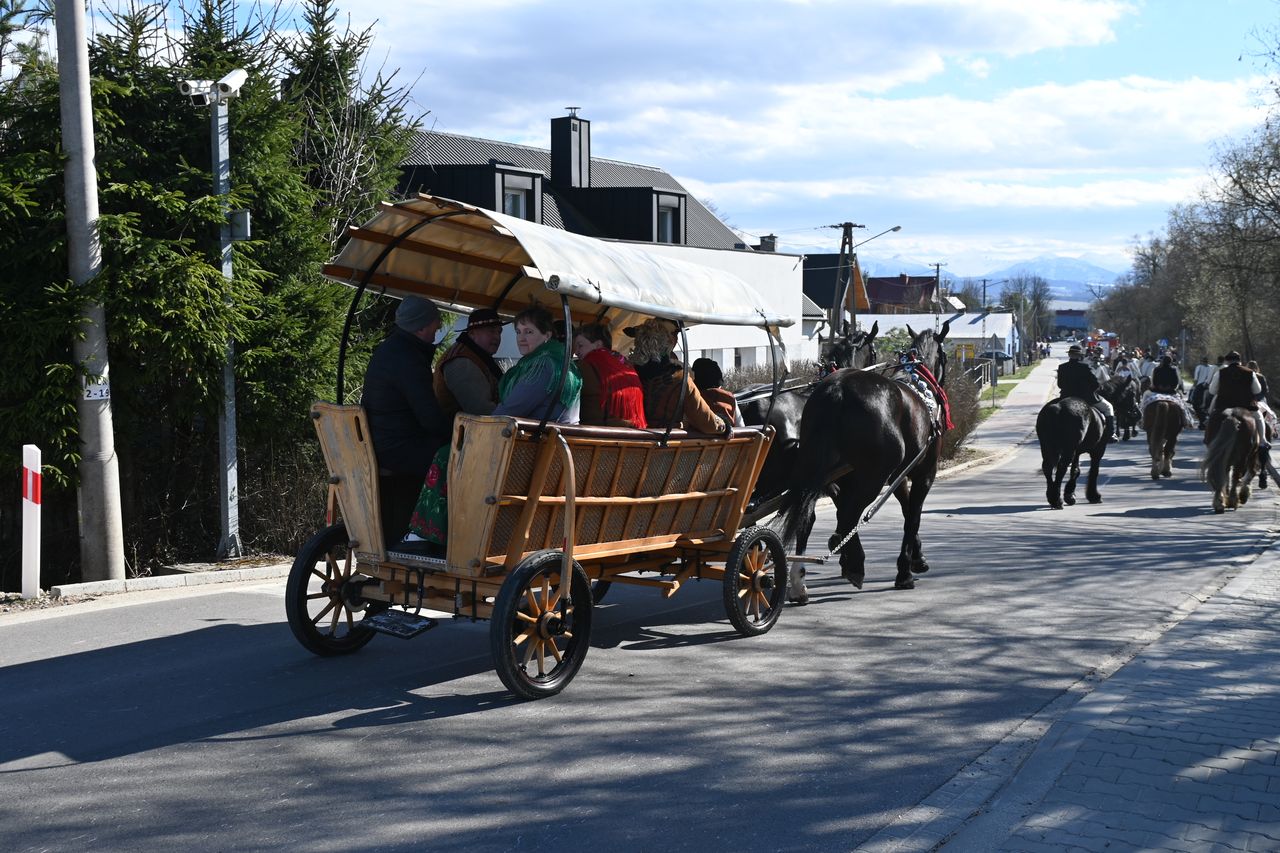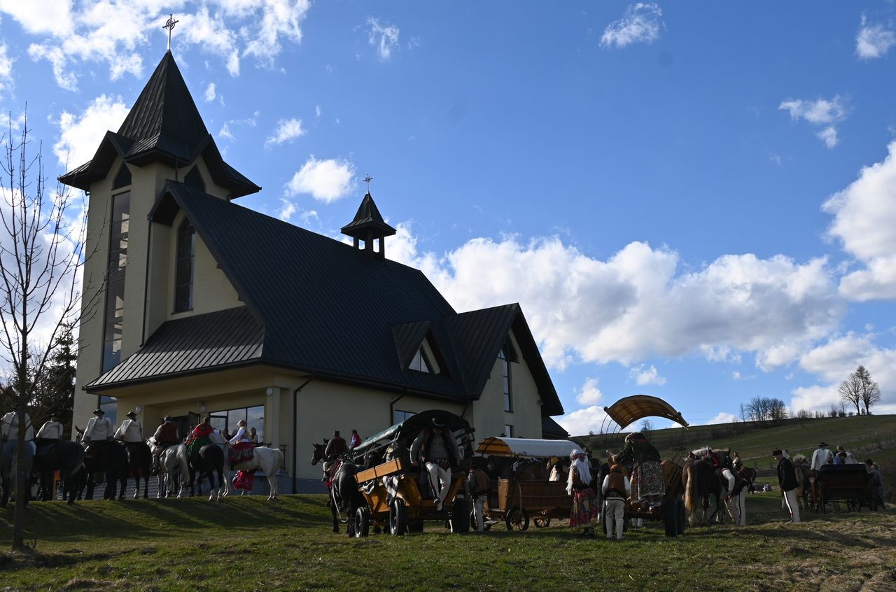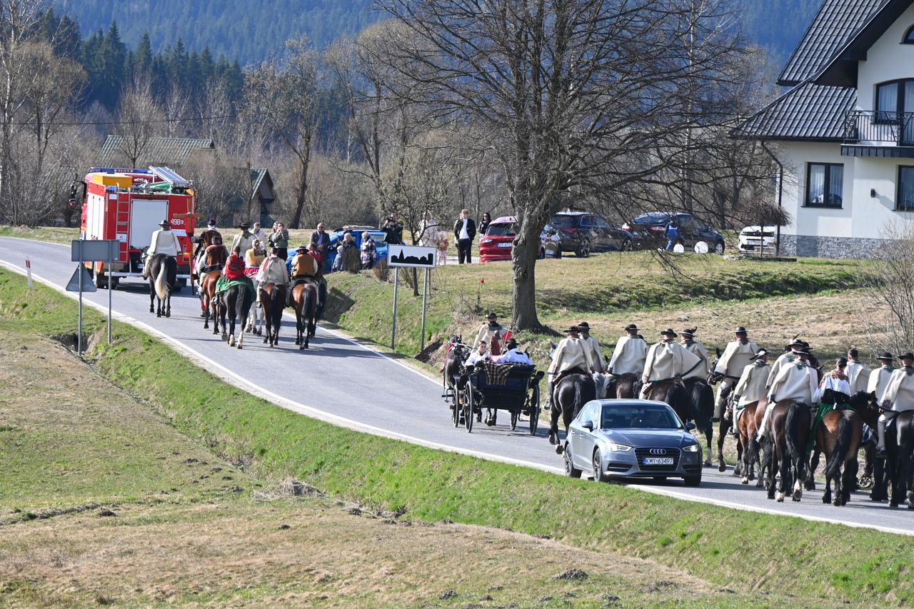 Fot. Jan GłąbińskiPonad 40 jeźdźców z banderii konnej wyruszyło w lany poniedziałek 6 kwietnia z Klikuszowej koło Nowego Targu do Morawczyny niedaleko Ludźmierza w góralskiej procesji z Chrystusem Zmartwychwstałym – w drodze do Emaus. Na jednym z koni podążał, trzymając w ręku wielki drewniany krzyż, ks. prałat Władysław Zązel.
