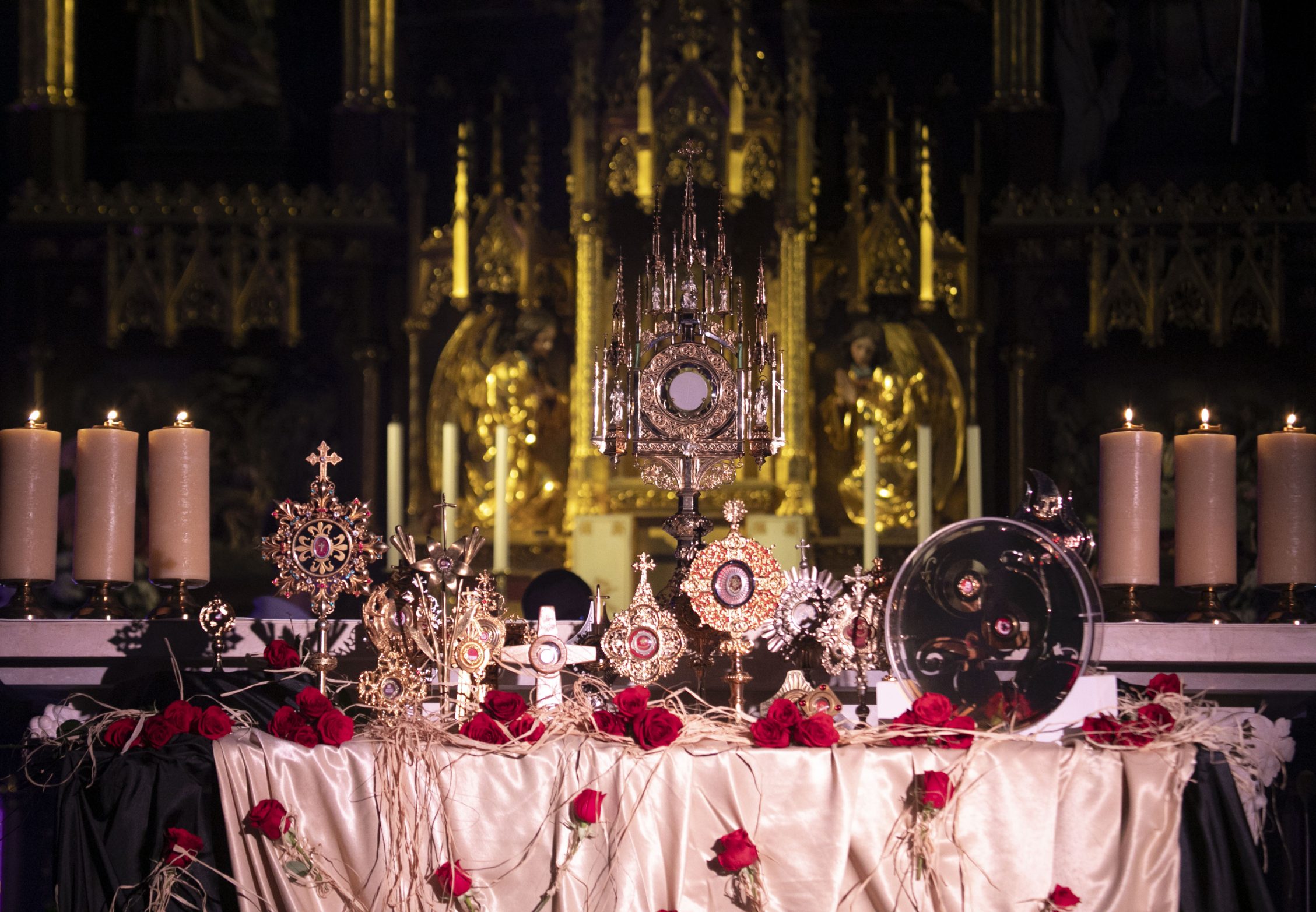 Podczas wieczornego czuwania odśpiewano litanię do wszystkich świętych, w czasie której wprowadzono relikwie świętych i błogosławionych i ustawiono je przed ołtarzem. Na koniec – w uroczystej procesji – wniesiono Najświętszy Sakrament.