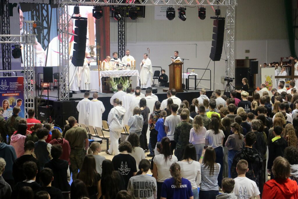 Kilkuset młodych ludzi z różnych parafii całej archidiecezji wrocławskiej zgromadziło się w hali Akademii Wychowania Fizycznego we Wrocławiu, by wspólnie świętować 40. Światowy Dzień Młodzieży. Ich duchowymi przewodnikami byli biskupi Jacek Kiciński CMF oraz Maciej Małyga.