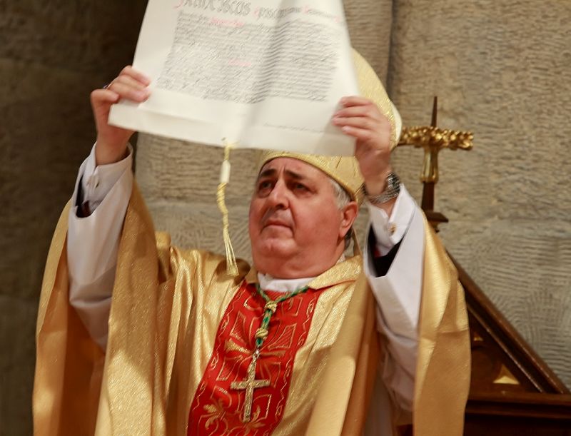 Następnie odczytano bullę papieża Franciszka „In navem ascendens”, w której Ojciec Święty wskazał nowemu arcybiskupowi Łodzi zadania, jakie przed nim stoją. Widocznym symbolem przekazania władzy biskupiej stał się pastorał pierwszego biskupa łódzkiego Włodzimierza Tymienieckiego.