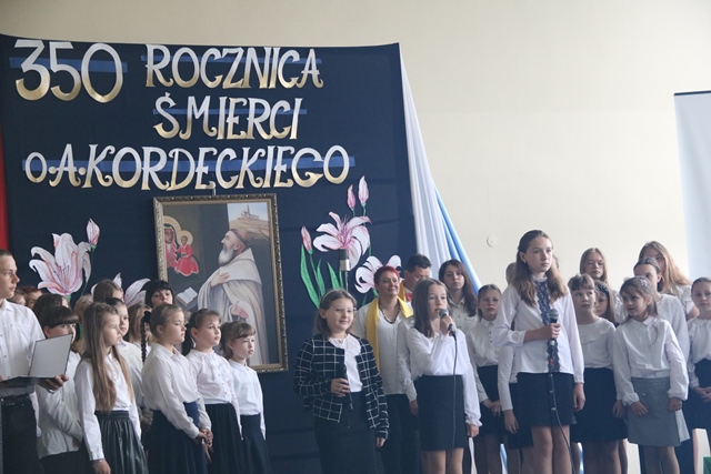 Dalsza część uroczystości odbyła się w Zespole Szkół im. o. Augustyna Kordeckiego, gdzie uczniowie pod kierunkiem nauczyciela religii Justyny Kmieć zaprezentowali patrona szkoły w montażu słowno-muzycznym. Wręczono także nagrody laureatom Gminnego Konkursu Wiedzy o życiu o. Augustyna Kordeckiego.