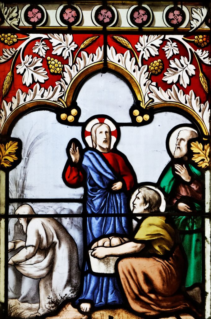 Mowa Eucharystyczna Jezusa nad rozmnożonym chlebem znajduje się na jednym z witrażów bretońskiej katedry Saint-Corentin w Quimper.