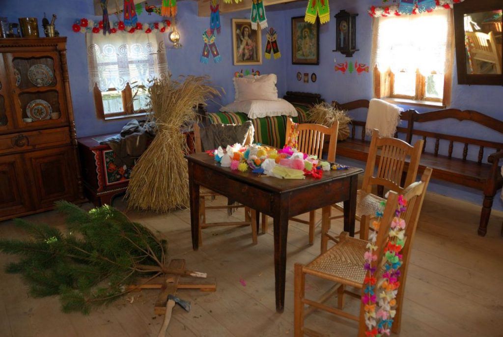 W skansenowskich izbach można także się przekonać, że zanim do Polski dotarły choinki – w kątach izb umieszczano snopy niewymłóconego zboża, udekorowane światami, czyli ozdobami wykonanymi z opłatka o różnorodnych kształtach. Stanowi to upamiętnianie rolniczego pochodzenia świąt Bożego Narodzenia.