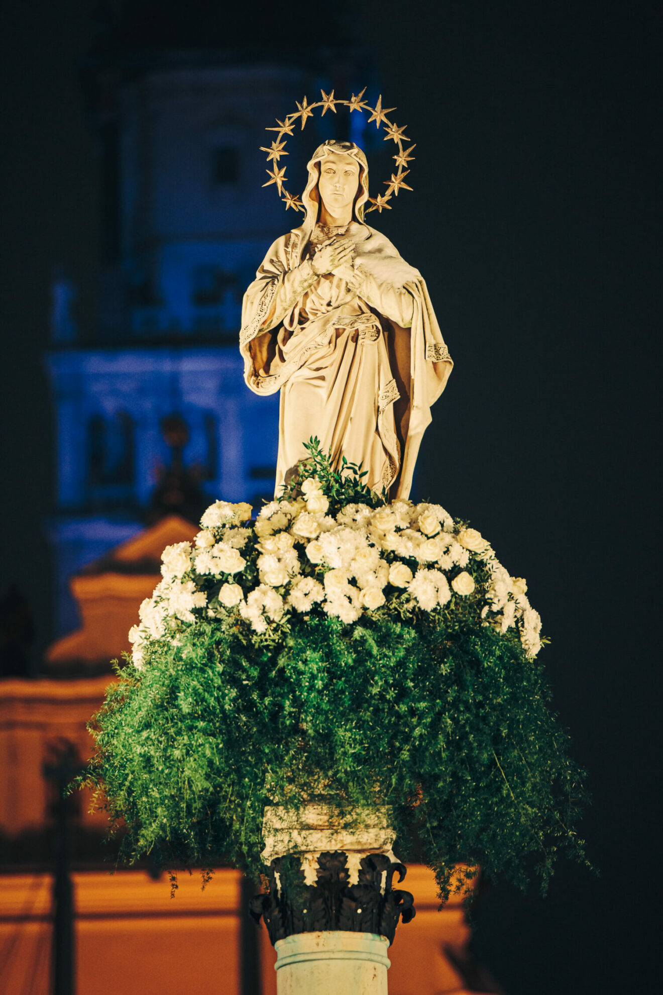 W symbolicznych białych różach składanych pod figurą Niepokalanej na placu pielgrzymi oddają Maryi swoje życie, zawierzają Kościół, Papieża, Ojczyznę i świat. – Ty, która czynisz cuda, prosimy Cię dzisiaj o cud pokoju na świecie, i tego pokoju w Ukrainie, w Ziemi Świętej, w każdym zakątku ziemi, i o cud pokoju w naszych sercach oraz między nami – modlił się bp Przybylski.