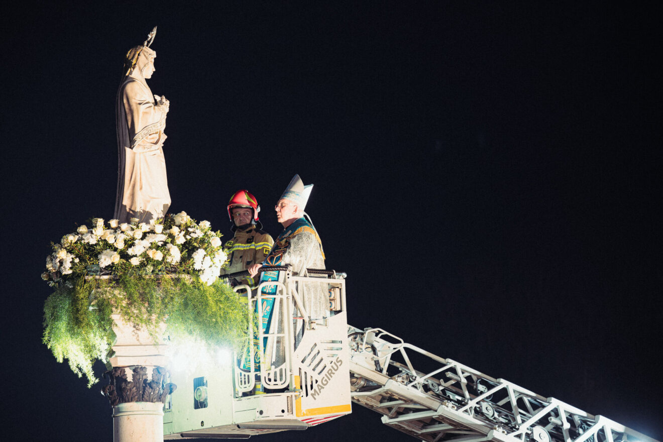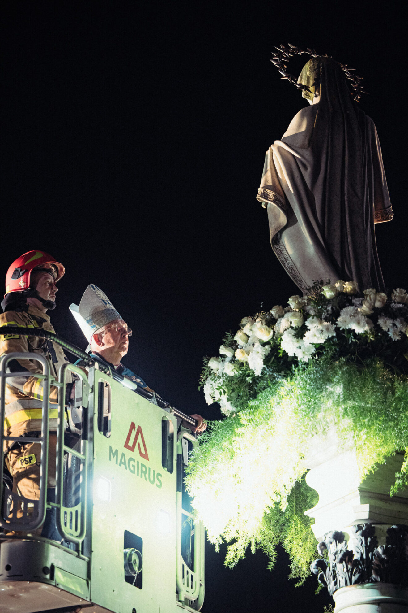 Po akcie zawierzenia, na wzór rzymski, główny celebrans w koszu drabiny strażackiej został wyniesiony w górę i złożył u stóp figury Maryi Niepokalanej wiązankę białych róż. Licznie zebrani wierni jego śladem złożyli także na cokole przed figurą przyniesione przez siebie białe kwiaty.