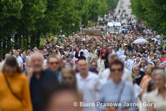W tym roku centralna procesja Bożego Ciała miasta Częstochowy zakończyła się błogosławieństwem z Jasnej Góry. Zgodnie z wieloletnim zwyczajem procesje odbywają się naprzemiennie z Jasnej Góry do archikatedry lub z archikatedry do sanktuarium. To podkreśla też związek pobożności eucharystycznej z rolą Maryi w Kościele, bo, jak pisał św. Jan Paweł II w encyklice o Eucharystii, Maryja to Niewiasta Eucharystii.