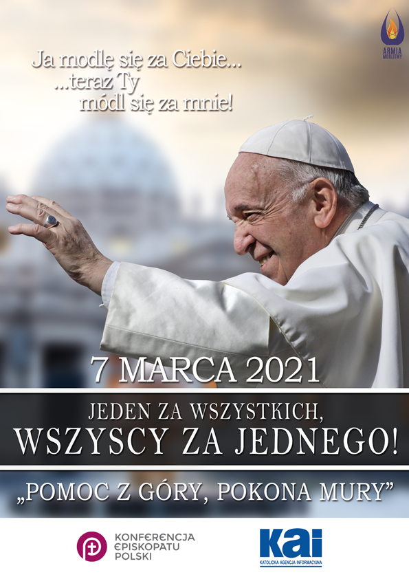 „Jeden za wszystkich, wszyscy za jednego” – to szturm modlitewny w intencji papieża Franciszka organizowany już po raz czwarty z okazji rocznicy jego wyboru. Akcja odbędzie się w niedzielę 7 marca 2021 r. Aby wziąć w niej udział należy odmówić litanię do Chrystusa Dobrego Pasterza – w intencji Ojca Świętego.