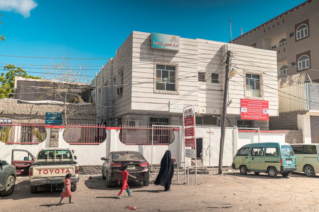 Choć Ośrodek Zdrowia Al-Memdara jest położony w mocno zurbanizowanej dzielnicy Adenu, praktycznie w środku miasta, nie oznacza to, że funkcjonuje w bezpiecznej okolicy. Kilka aut parkuje pod solidnym ogrodzeniem okalającym biały piętrowy budynek. Płot wyraźnie odcina się od pobliskich zabudowań – jest w tym pejzażu najnowszym elementem.