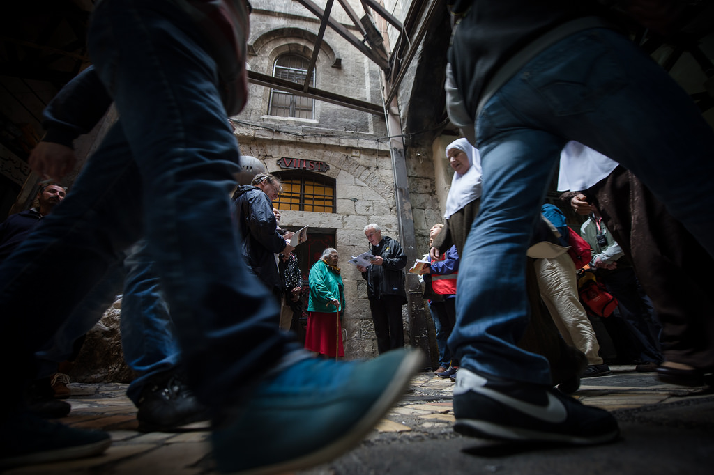 Fot. S. Lee / BP KEPJuż w starożytnym Jerusalem wierni gromadzili się na Golgocie przed świtem Wielkiego Piątku, by adorować drzewo Krzyża. Chrześcijanie udawali się także przed kolumnę biczowania i do bazyliki Bożego grobu, by kontemplować mękę i śmierć Zbawiciela. Do dziś ścieżki drogi krzyżowej – choć przecinają codzienne ścieżki mieszkańców Jerozolimy, stale przypominają przepełnioną cierpieniem i miłością wędrówkę Chrystusa na miejsce odkupieńczej ofiary.