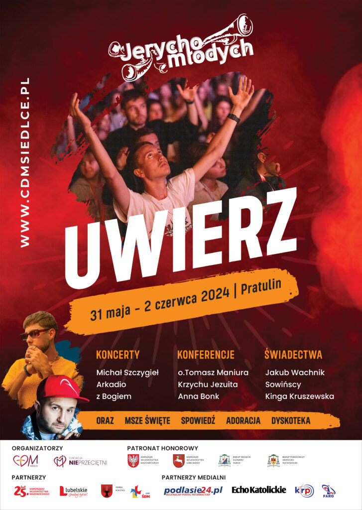 Chęć udziału w Jerychu Młodych można zgłaszać indywidualnie lub grupowo przez odpowiedni formularz dostępny na stronie https://cdmsiedlce.pl/zapisy-jerycho. Koszt udziału w wydarzeniu to 80 zł. Dodatkowe informacje, w tym pełny program wydarzenia, dostępne są na Facebooku https://www.facebook.com/jerychopratulin i https://www.facebook.com/cdmsiedlce.