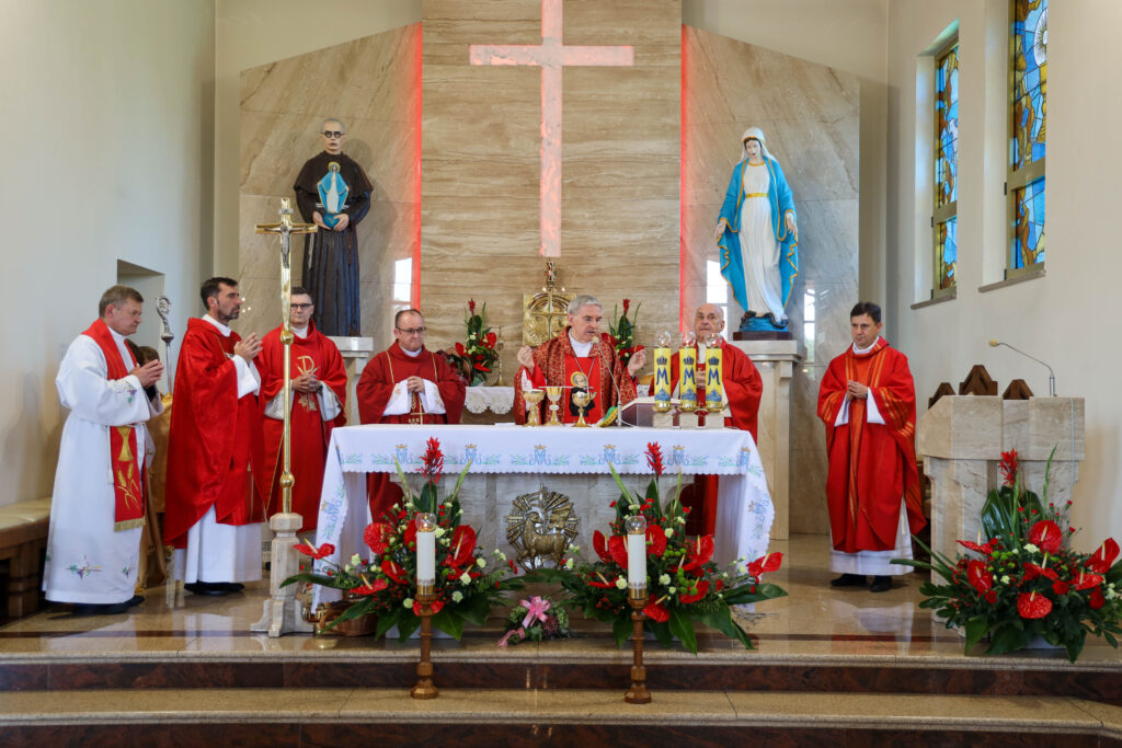 – Męczennik wznosi się ponad otaczające go zło, kocha, chociaż wszyscy wokół nienawidzą, błogosławi, choć uszy wychwytują jedynie przekleństwa. Pomimo zaciskającego się z głodu żołądka, męczennik dzieli się z bliźnim ostatnią kruszyną i zamiast ratować swoje życie, oddaje je za innych. Starajmy się naśladować św. Maksymiliana oraz innych świadków wiary w dzisiejszym świecie, który niesie nowe wyzwania – powiedział biskup,