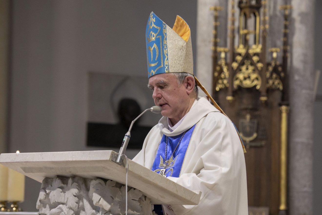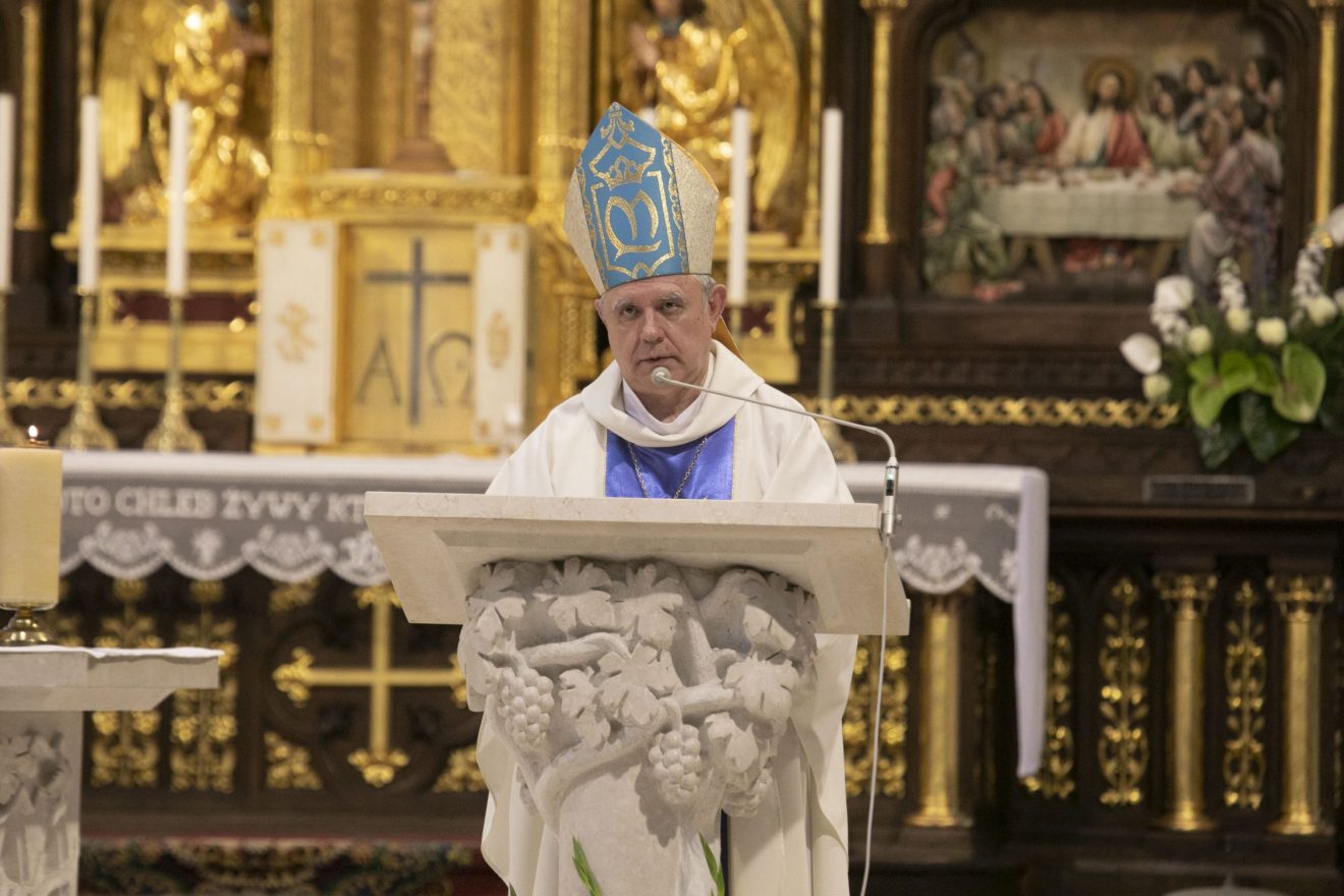 Kończąc homilię, powiedział: „Aby być wiernym sumieniu – prawemu sumieniu – kształtowanemu we właściwej szkole Jezusa i Maryi – może nieraz człowieka wiele kosztować. Ale jeśli chcemy być wierni swojej wierze i sumieniu nie mamy innego wyjścia – trzeba nam iść tą drogą trudną, na której nie jesteśmy sami, bo z nami jest Ten, który umacnia naszą wiarę, zwłaszcza wtedy, kiedy przyjmujemy Go w Słowie, i w Eucharystii„.