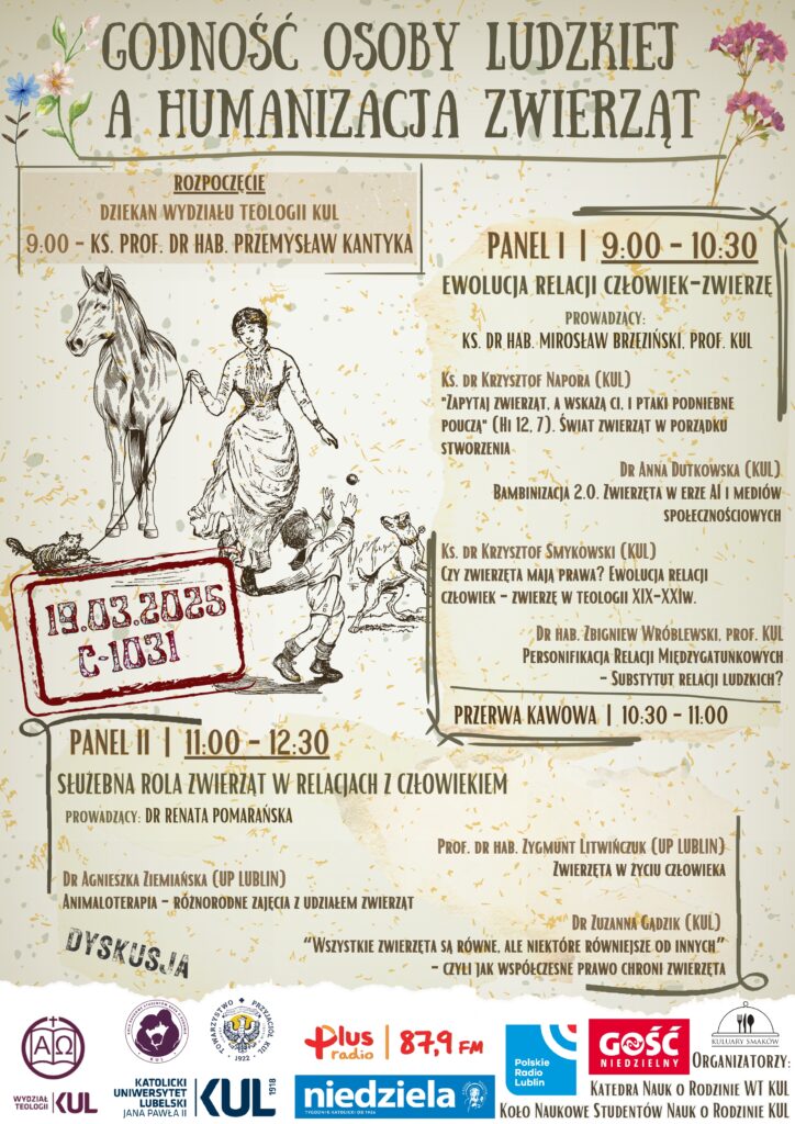 Organizatorami wydarzenia jest Katedra Nauk o Rodzinie KUL oraz Studenckie Koło Naukowe Nauk o Rodzinie KUL. Konferencja „Godność osoby ludzkiej a humanizacja zwierząt” odbędzie s w Katolickim Uniwersytecie Lubelskim Jana Pawła II w Lublinie. Rozpoczęcie 19 marca o godz 9.00
