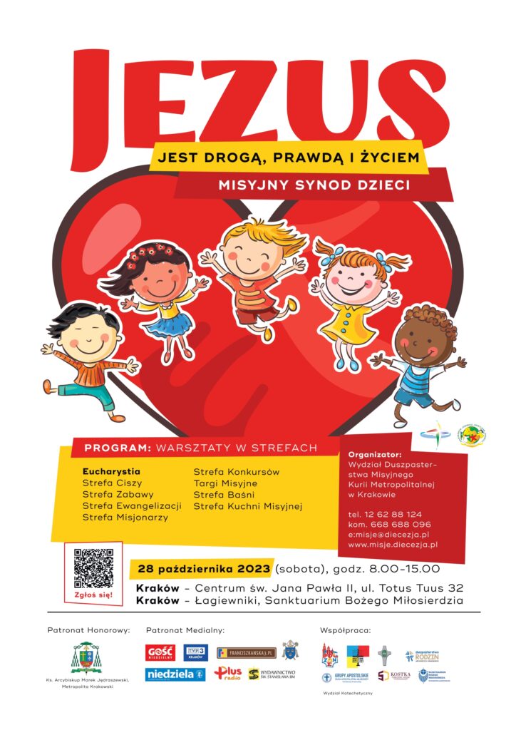 „Jezus jest Drogą, Prawdą i Życiem” – pod takim hasłem w sobotę 28 października w krakowskich Łagiewnikach odbędzie się Misyjny Synod Dzieci. Udział w wydarzeniu, które połączy Sanktuarium Bożego Miłosierdzia z Sanktuarium św. Jana Pawła II, zapowiedziało dotychczas ponad 1200 uczestników z całej Archidiecezji Krakowskiej.