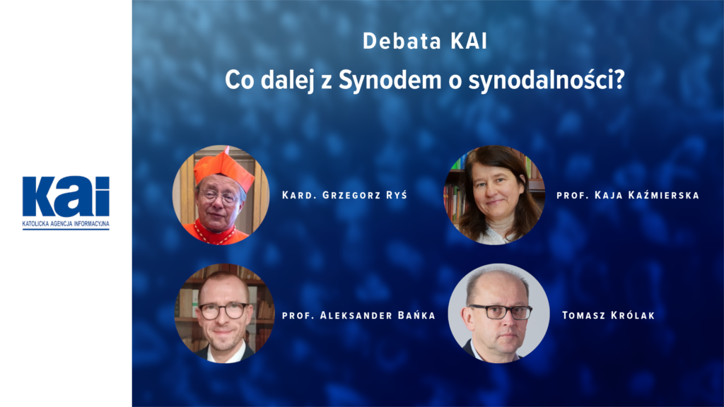 Próba podsumowania dotychczasowych etapów procesu synodalnego oraz refleksja jakie kroki związane z synodem należy podjąć w naszym lokalnym, polskim kontekście – to główne cele organizowanej przez Katolicką Agencję Informacyjną debaty zatytułowanej „Co dalej z Synodem o synodalności?”. Spotkanie, w którym będzie uczestniczył m.in. kard. Grzegorz Ryś, odbędzie się w piątek, 8 grudnia o godz. 15 w sali konferencyjnej w budynku Sekretariatu Konferencji Episkopatu Polski.