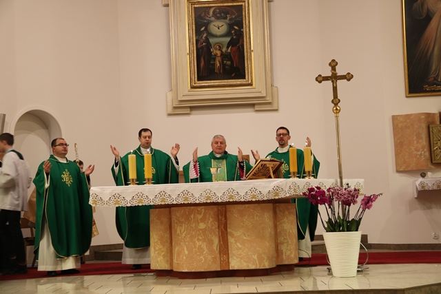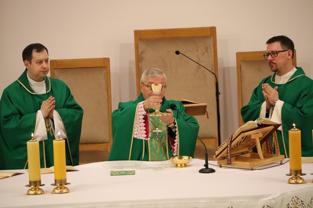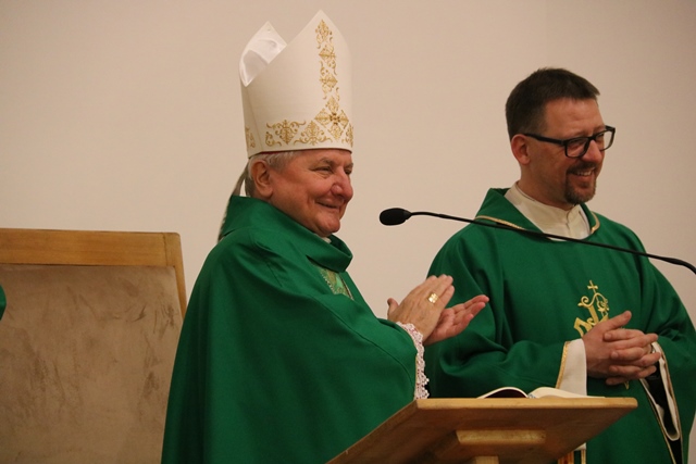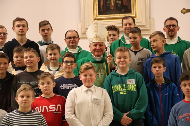 Rozpoczynając Mszę św. biskup kaliski prosił o modlitwę w intencji powołań do kapłaństwa i zakonu. – Pamiętajcie w modlitwie o księżach, którzy pracują w waszych parafiach wypraszając dla nich Boże błogosławieństwo. Pamiętajcie o waszych rodzicach. To oni zdecydowali o włączeniu was do Kościoła przez chrzest święty. To jest pierwszy sakrament, który wytycza nam drogę pielgrzymowania na ziemi – powiedział bp Janiak.